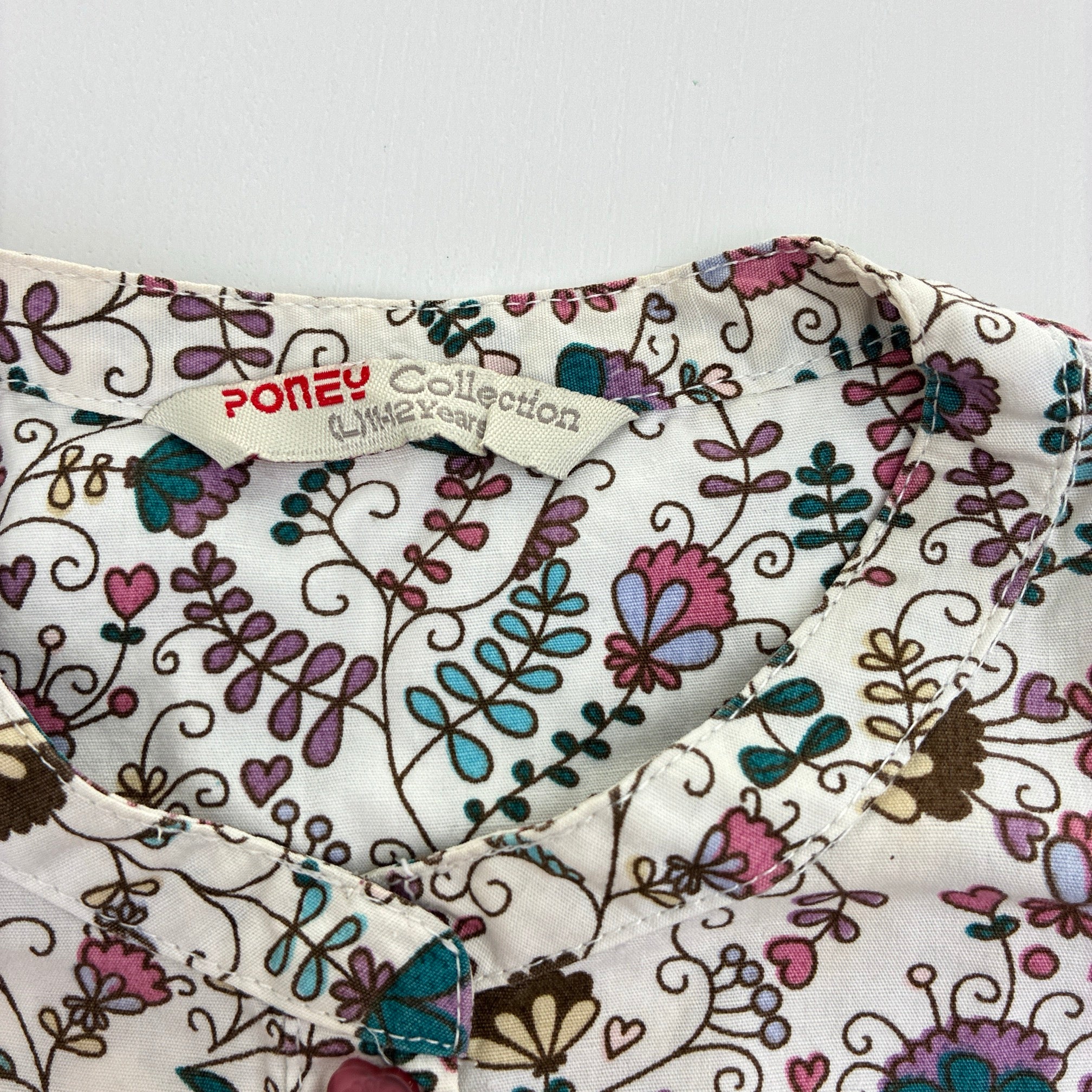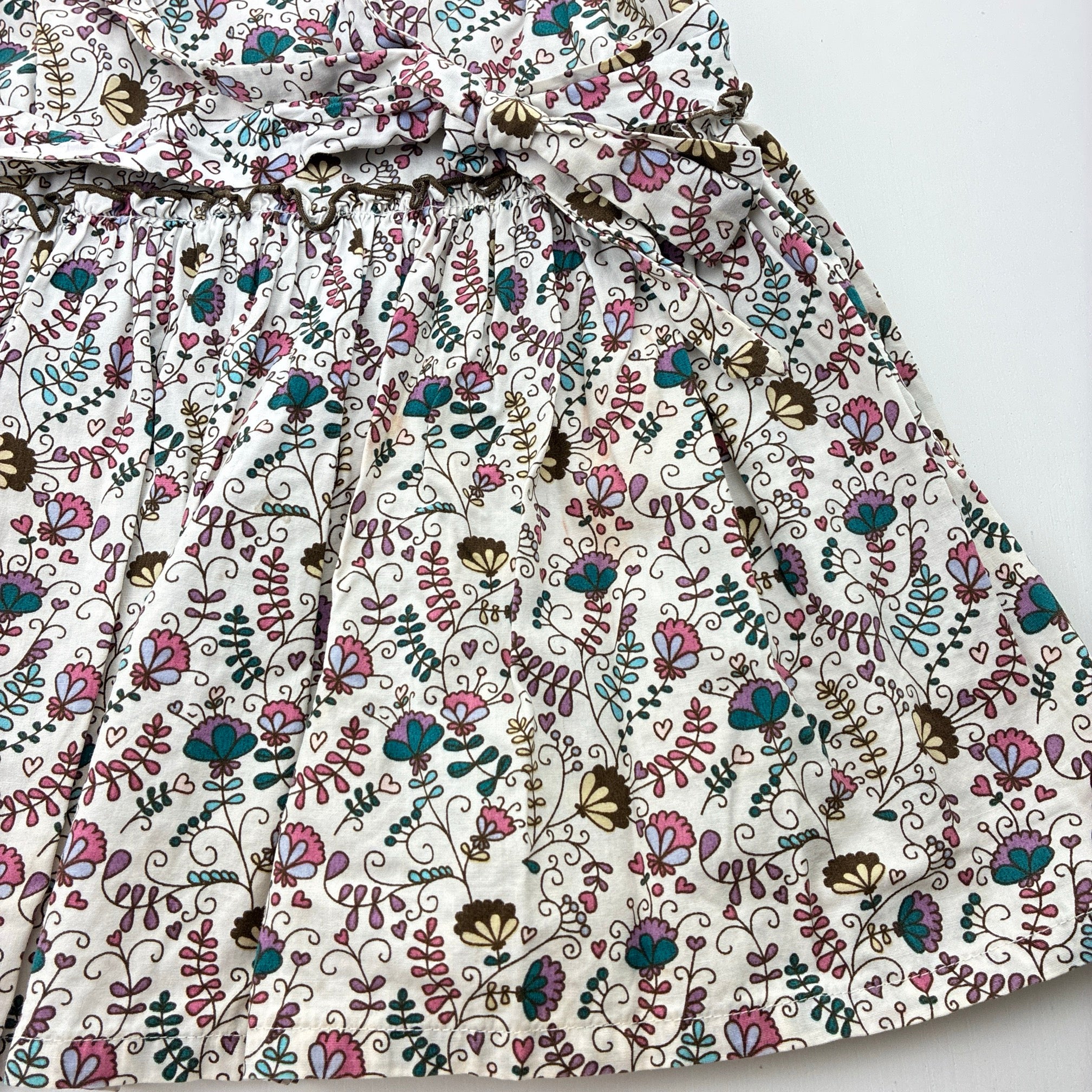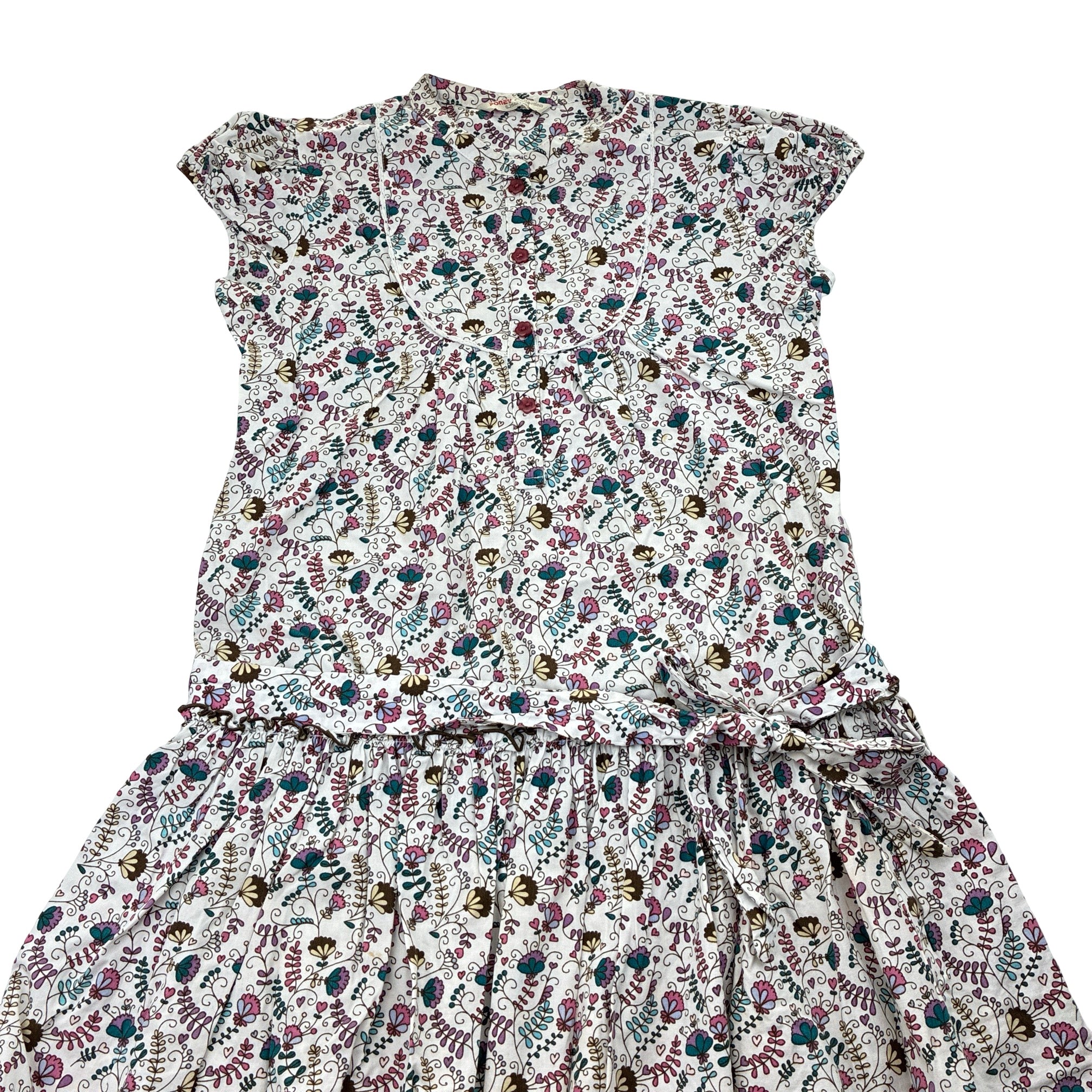 PONEY collection, lightweight floral cotton dress, discolouration on skirt, FUC, size 11-12, L: 70cm