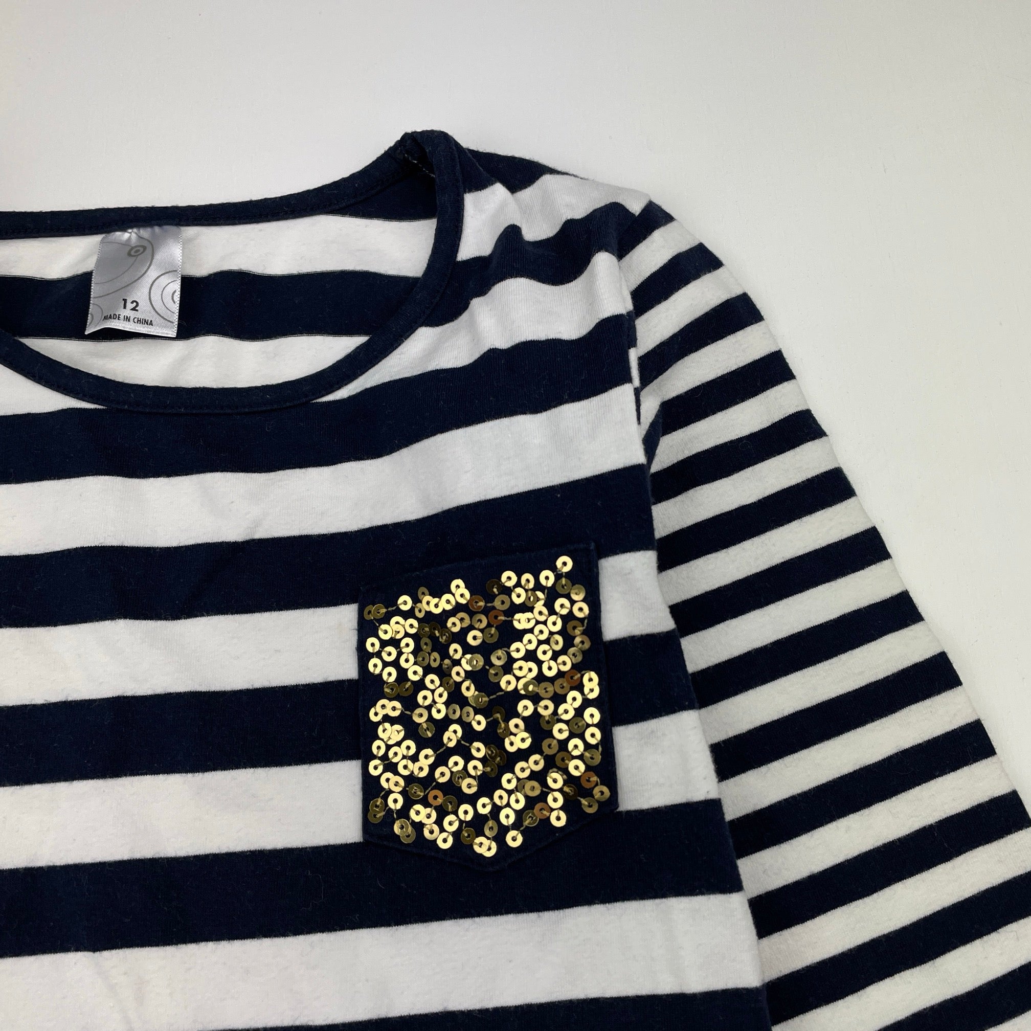 Target, navy stripe stretchy long sleeve top, GUC, size 12,