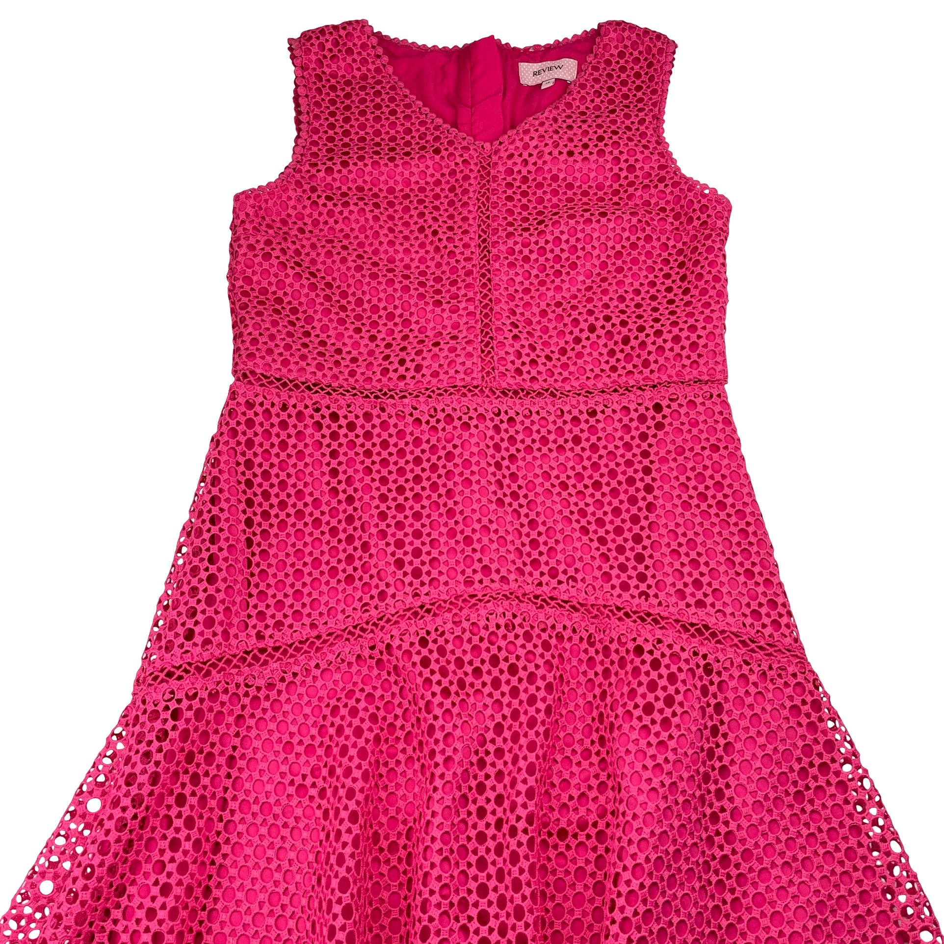 REVIEW, lined pink lace party / formal dress, EUC, size 12, L: 77cm