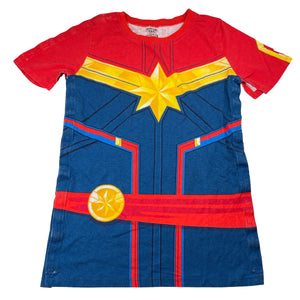 Marvel SUPER TEE Captain Marvel cotton tee, side & shoulder poppers, size 12, Pre-loved