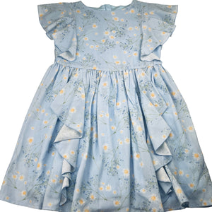 Origami lined floral ruffle party dress, size 12, Pre-loved
