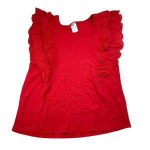 Target broderie trim red cotton top, size 12, Pre-loved