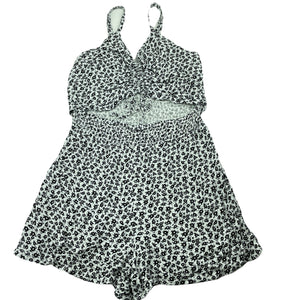 Mango black & white floral summer playsuit, size 12, Pre-loved