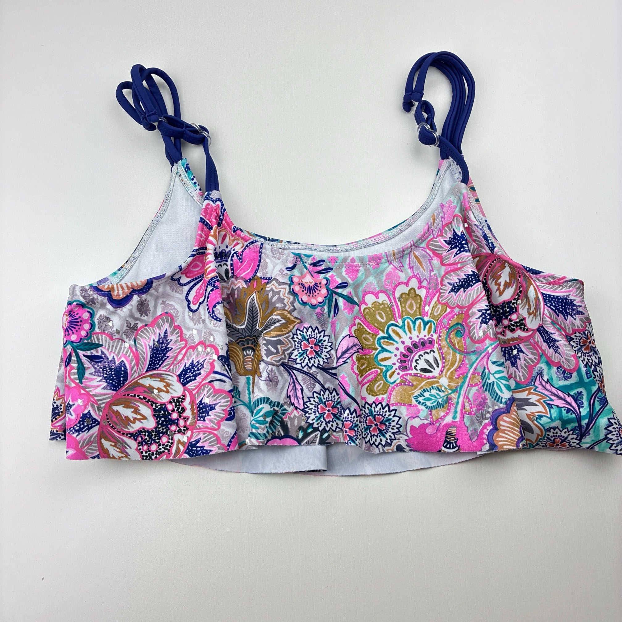 Minihaha, colourful floral swim top, EUC, size 14,