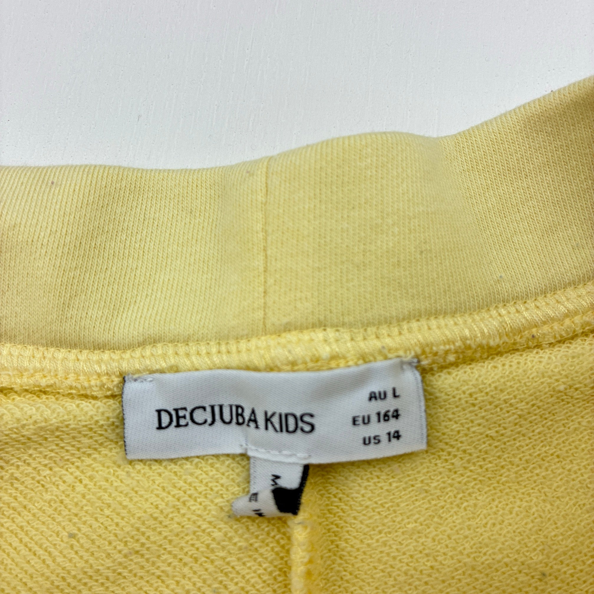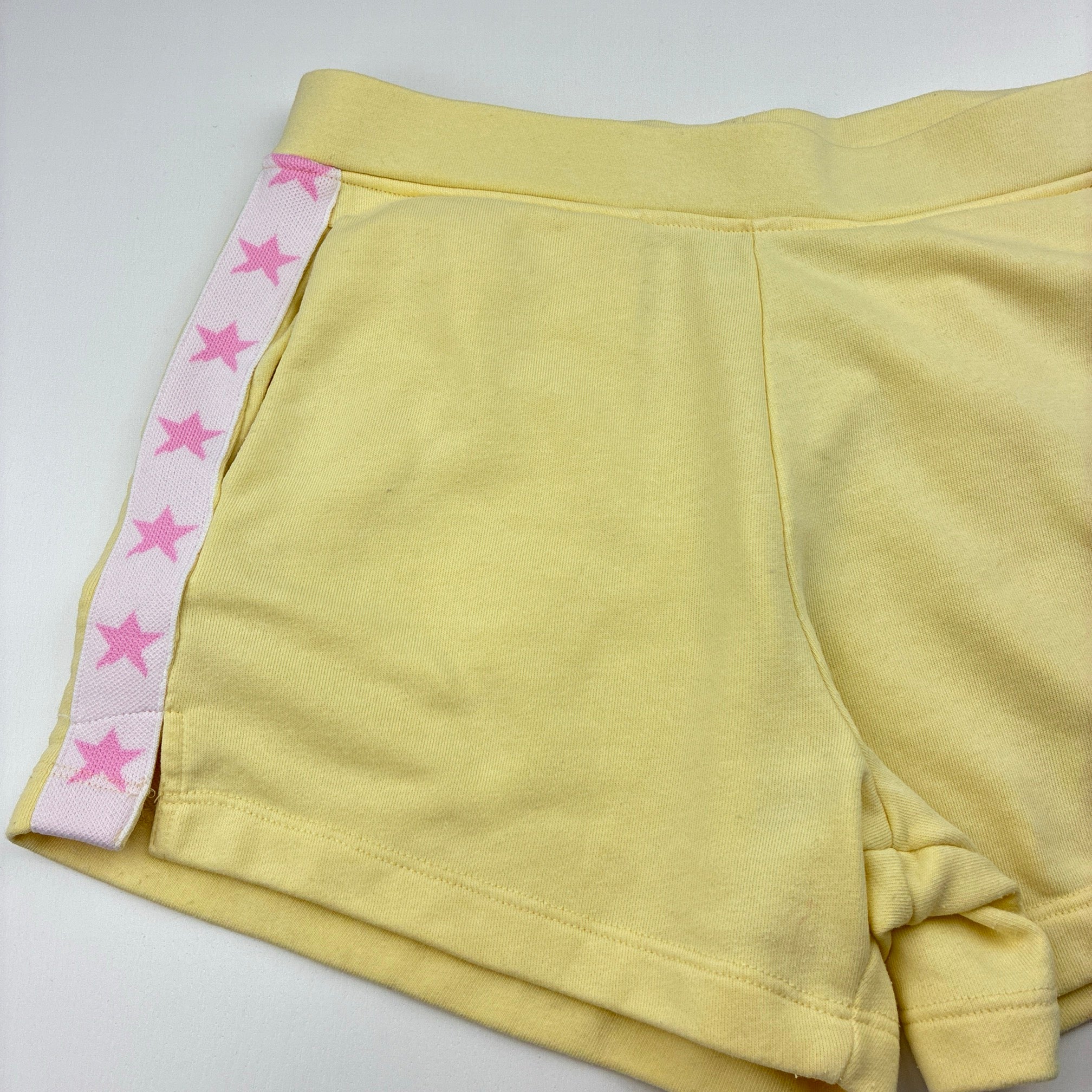 Decjuba Kids, yellow casual shorts, elasticated, light marks, FUC, size 14,