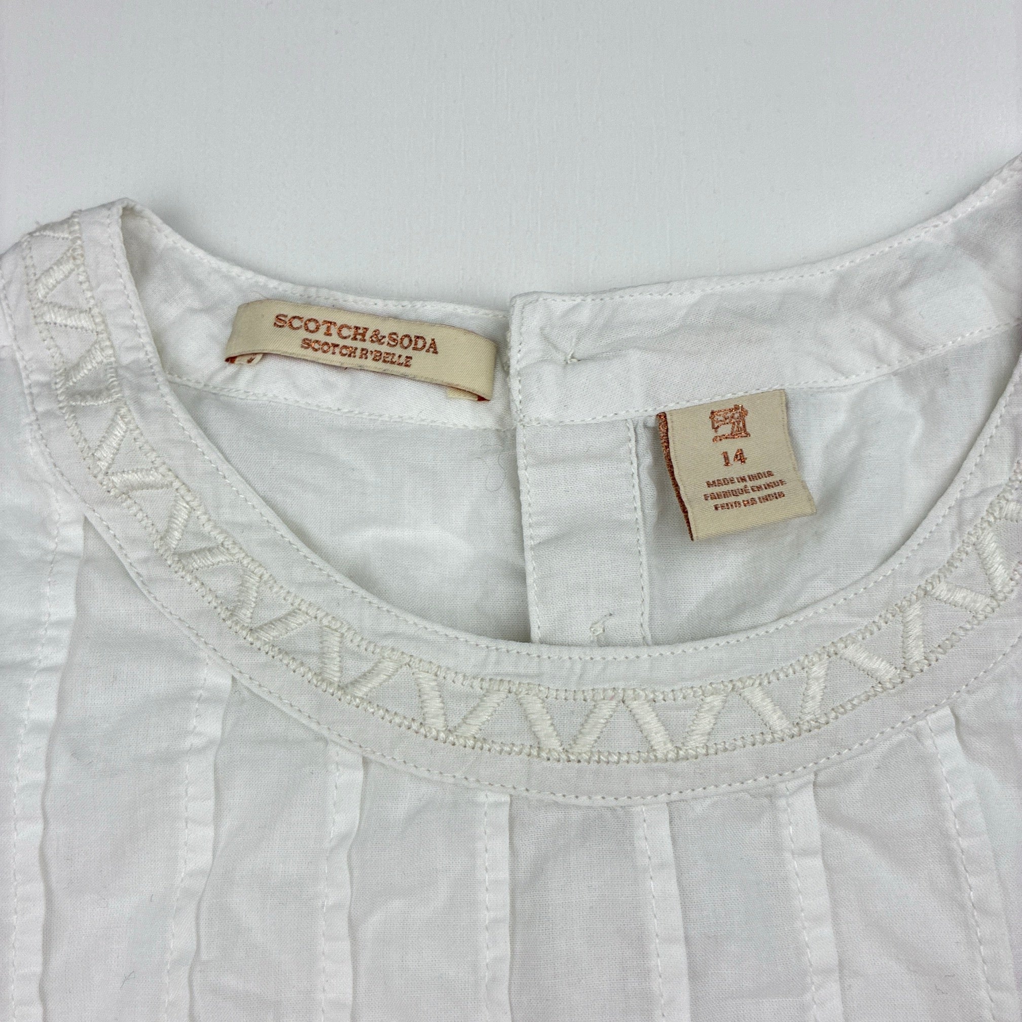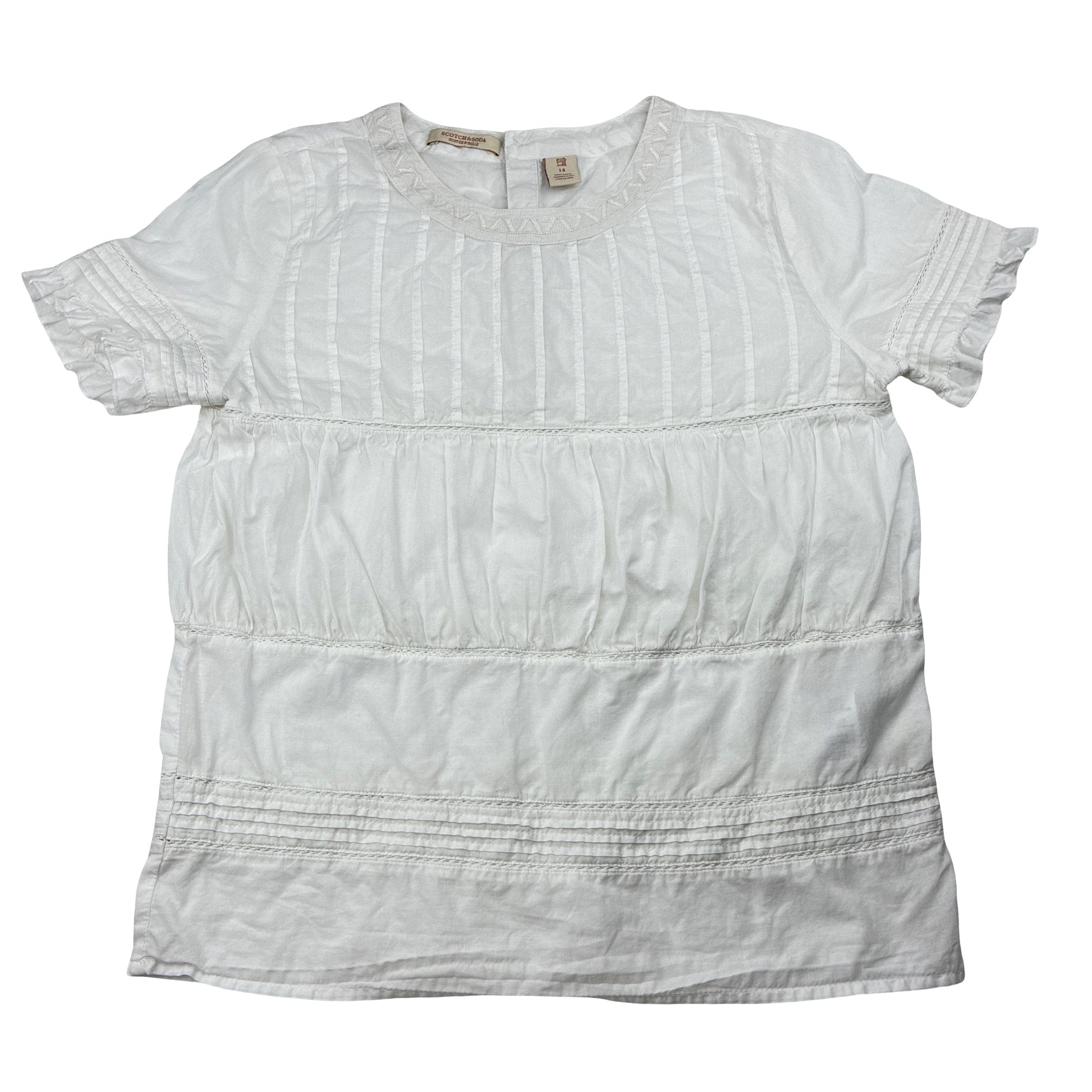 SOCTCH & SODA, white lightweight cotton short sleeve top, EUC, size 14,