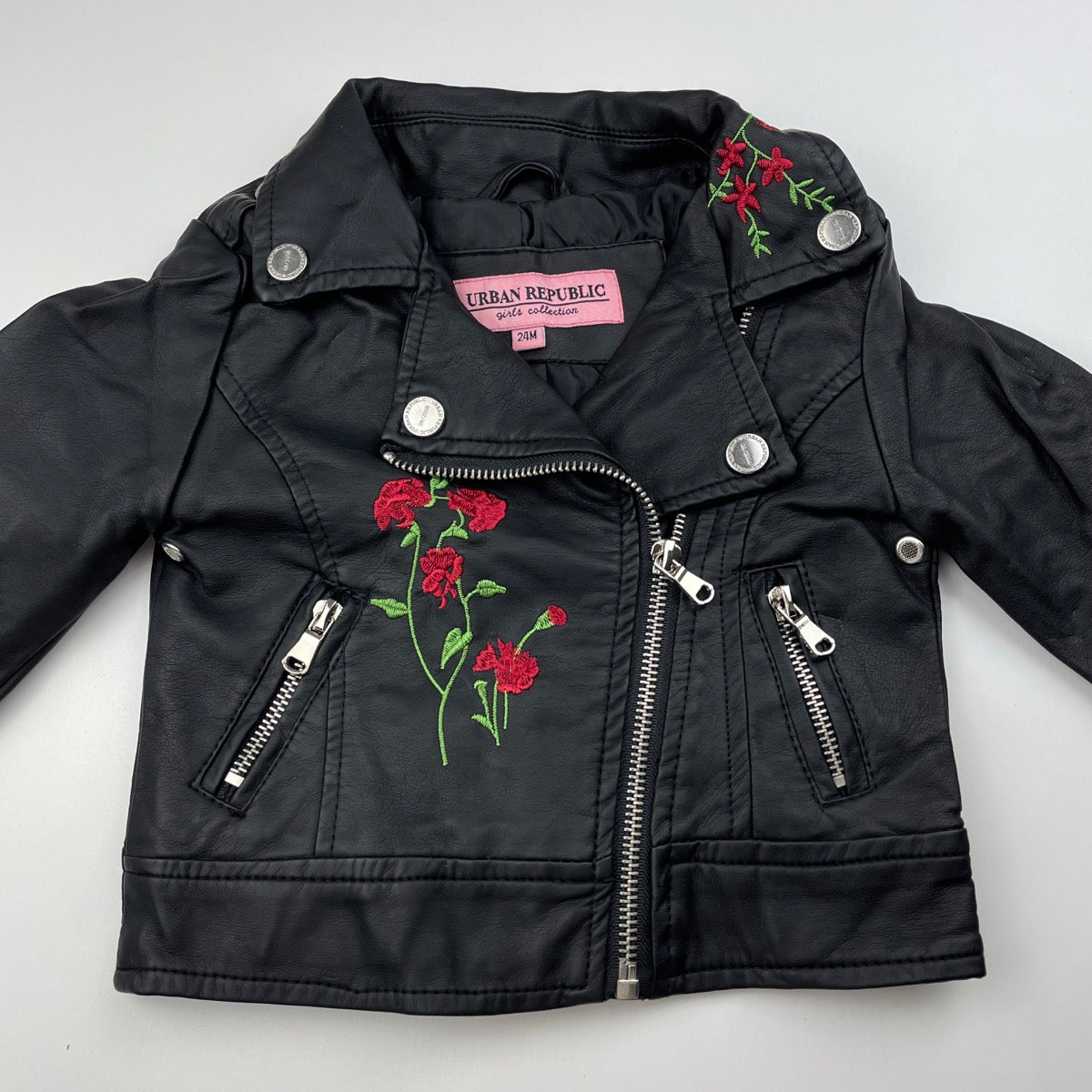 Girls URBAN REPUBLIC, embroidered faux leather jacket, EUC, size 2,