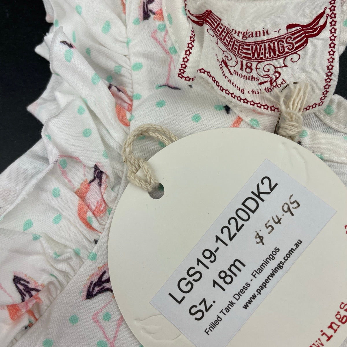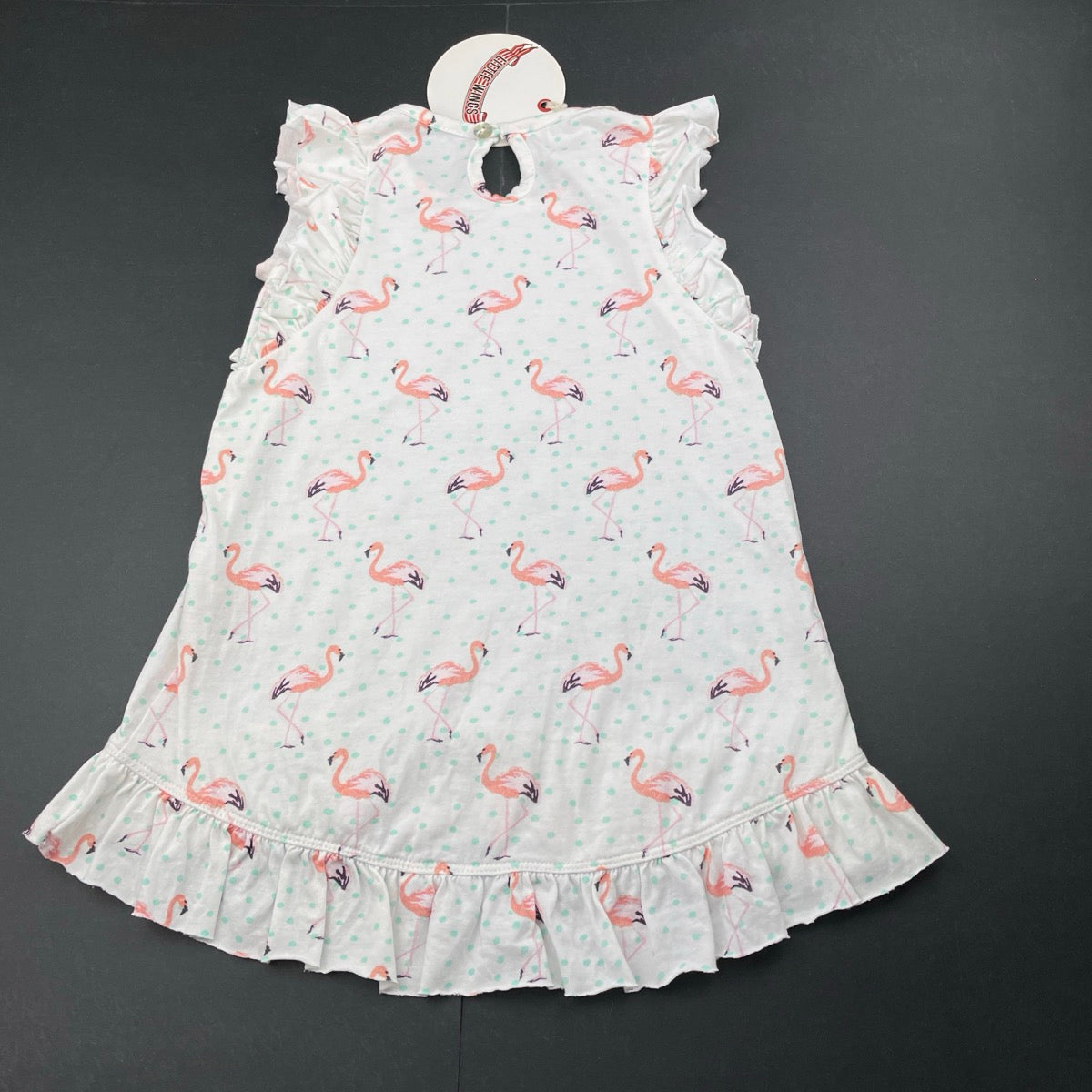 LITTLE WINGS, lightweight organic cotton dress, flamingos, NEW, size 1-2, L: 42cm at front