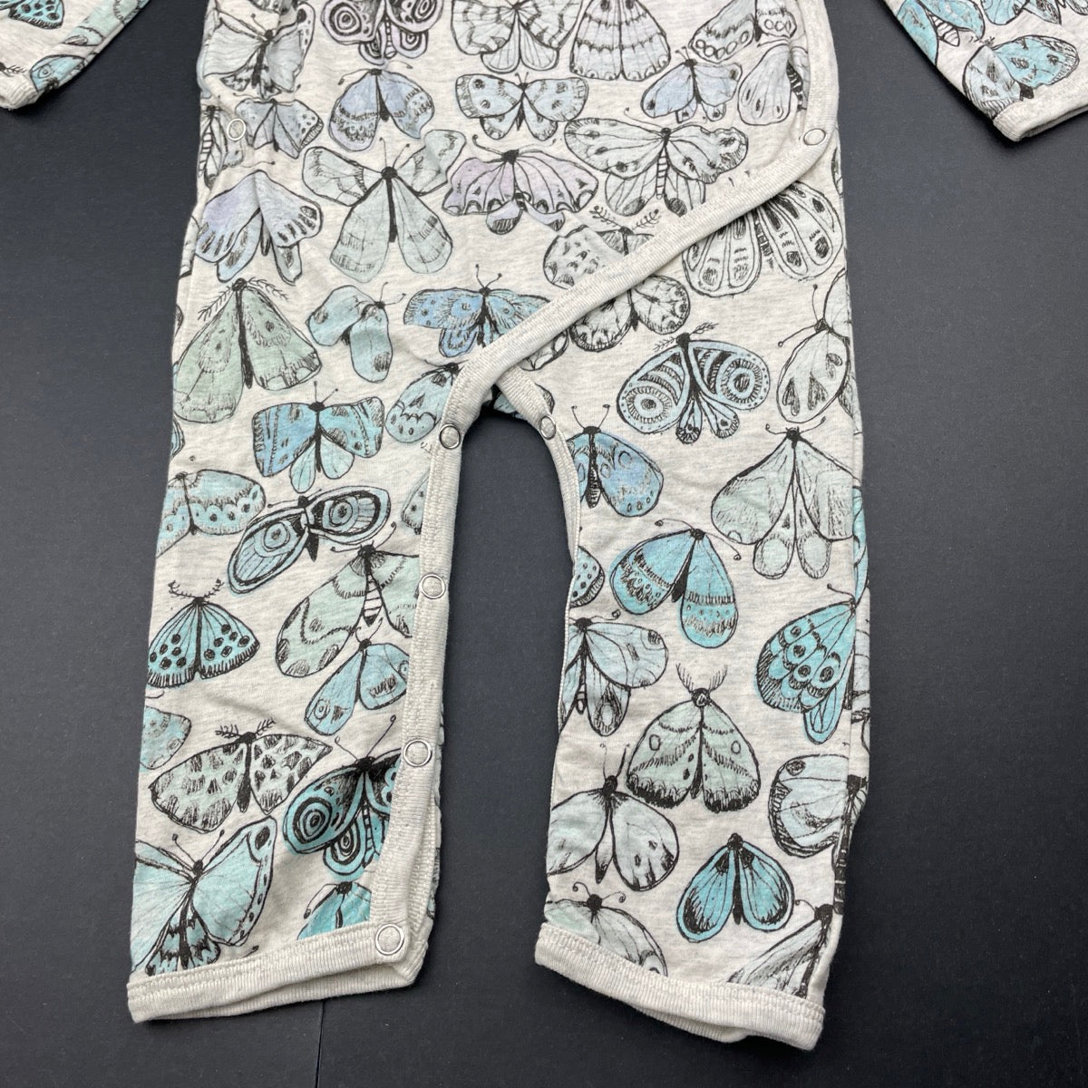 LITTLE WINGS, organic cotton romper, moths, discolouration upper back, FUC, size 1-2,