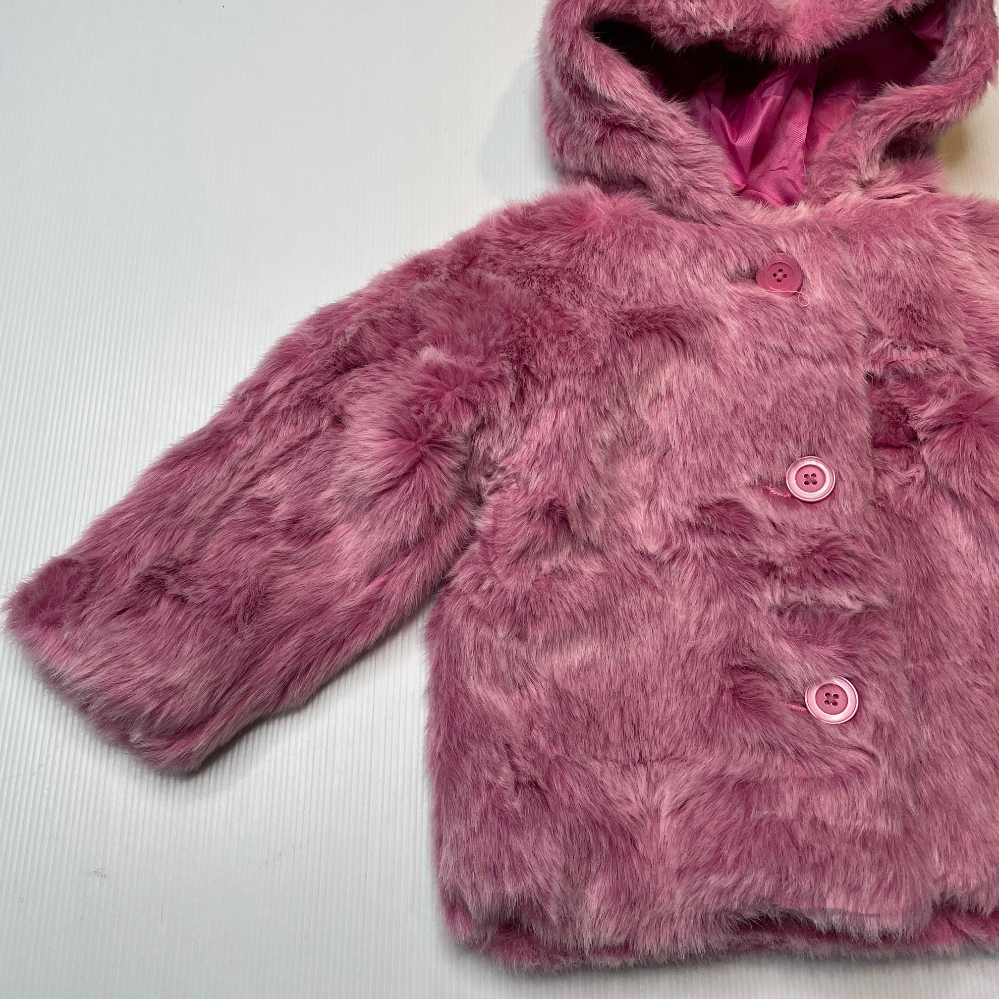 Old Navy lined pink faux fur jacket / coat, size 2, Pre-loved