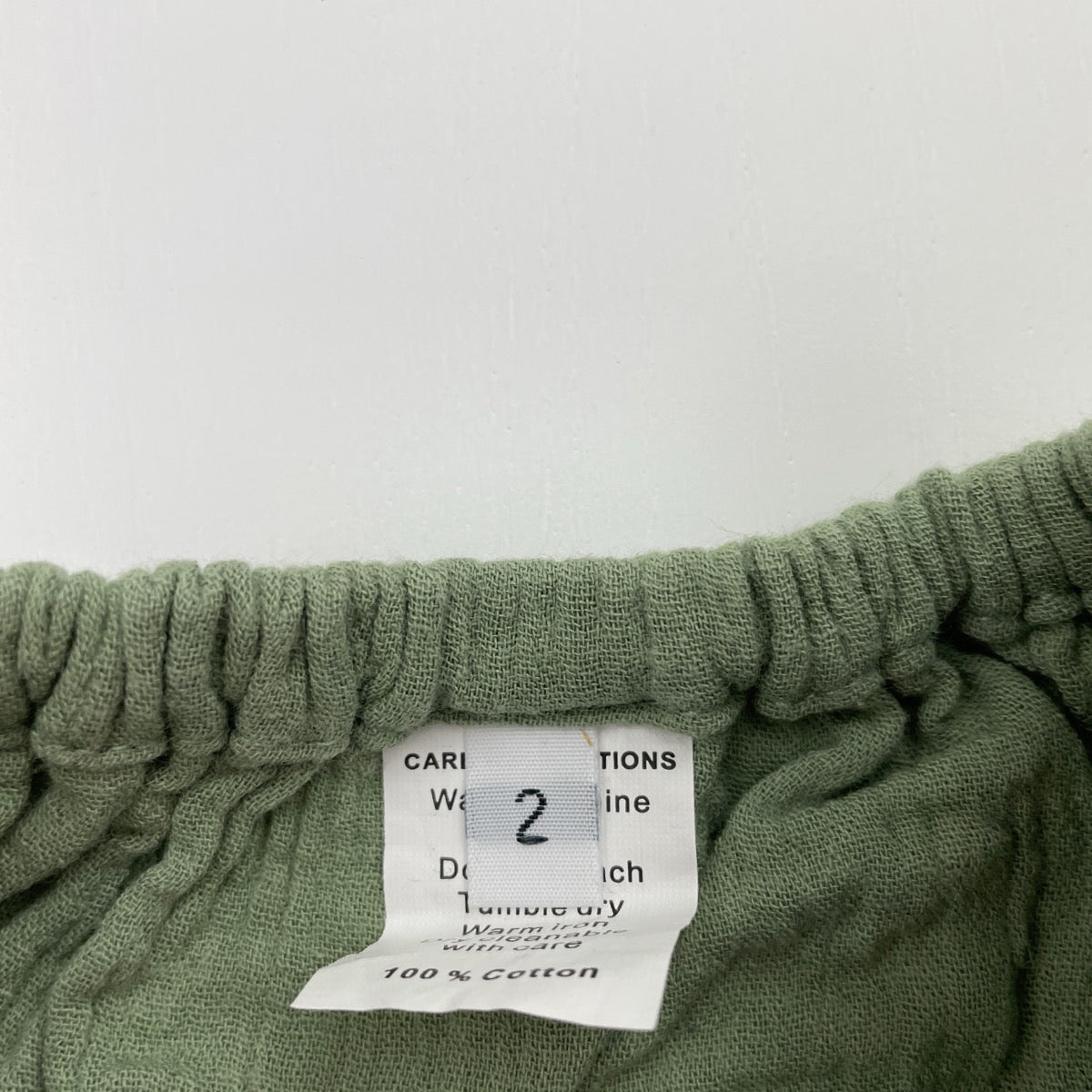 green, crinkle cotton summer top, GUC, size 2,