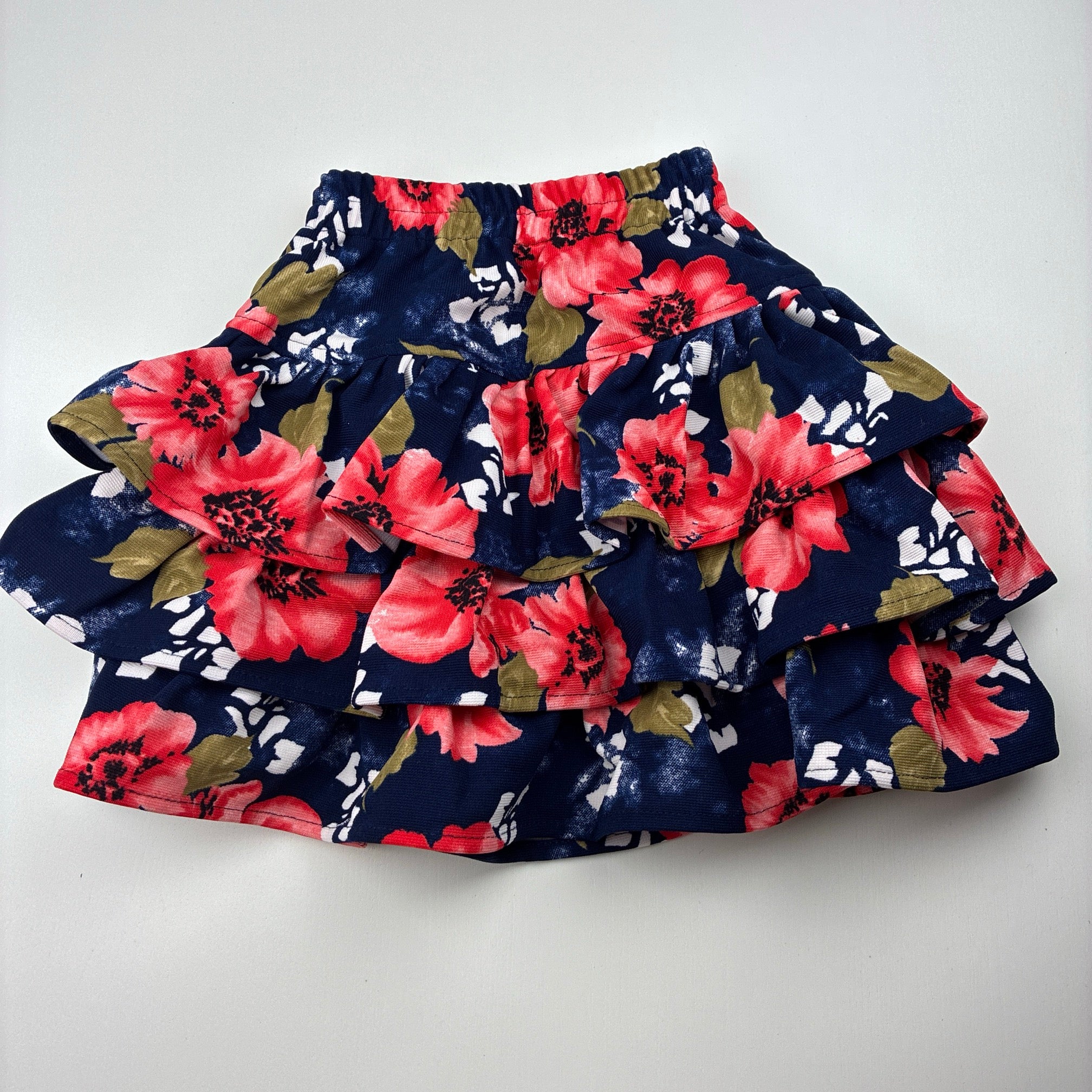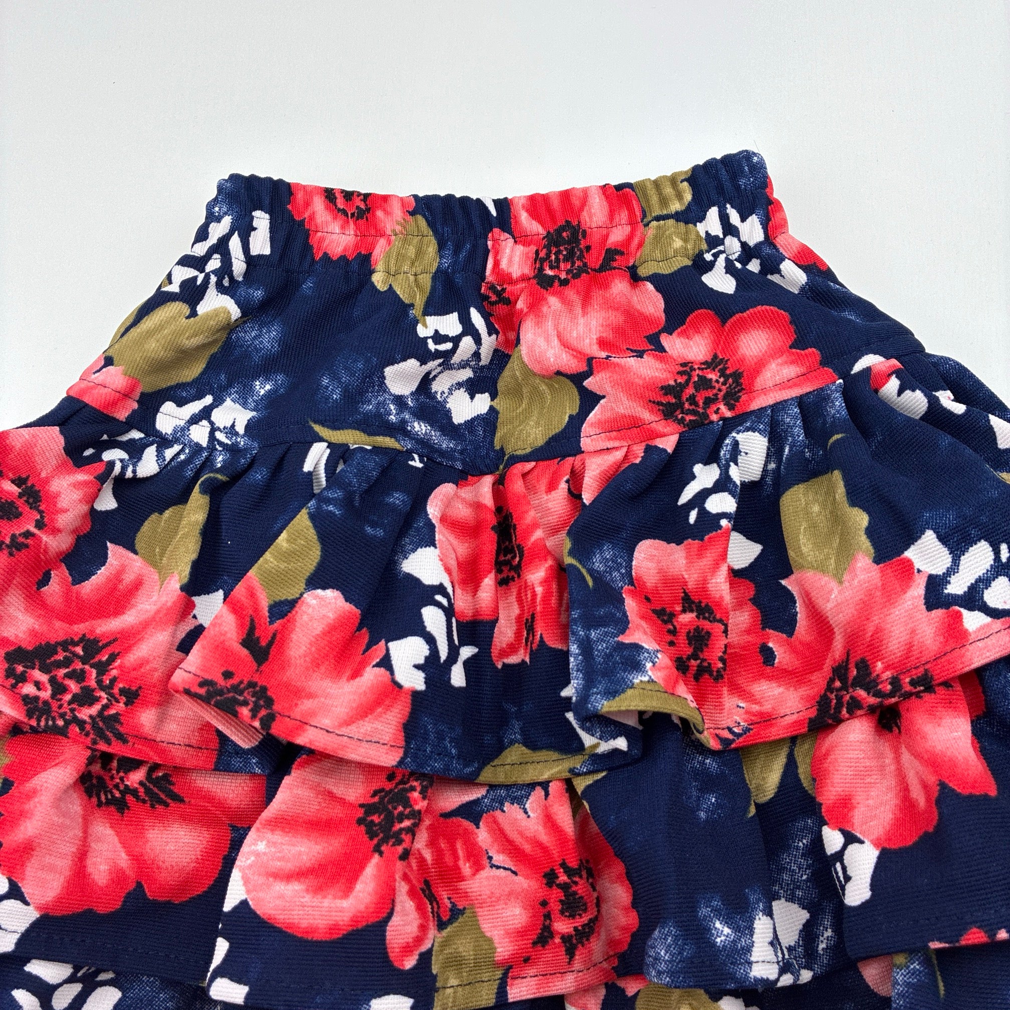 floral, tiered skirt, elasticated, L: 31cm, EUC, size 2,