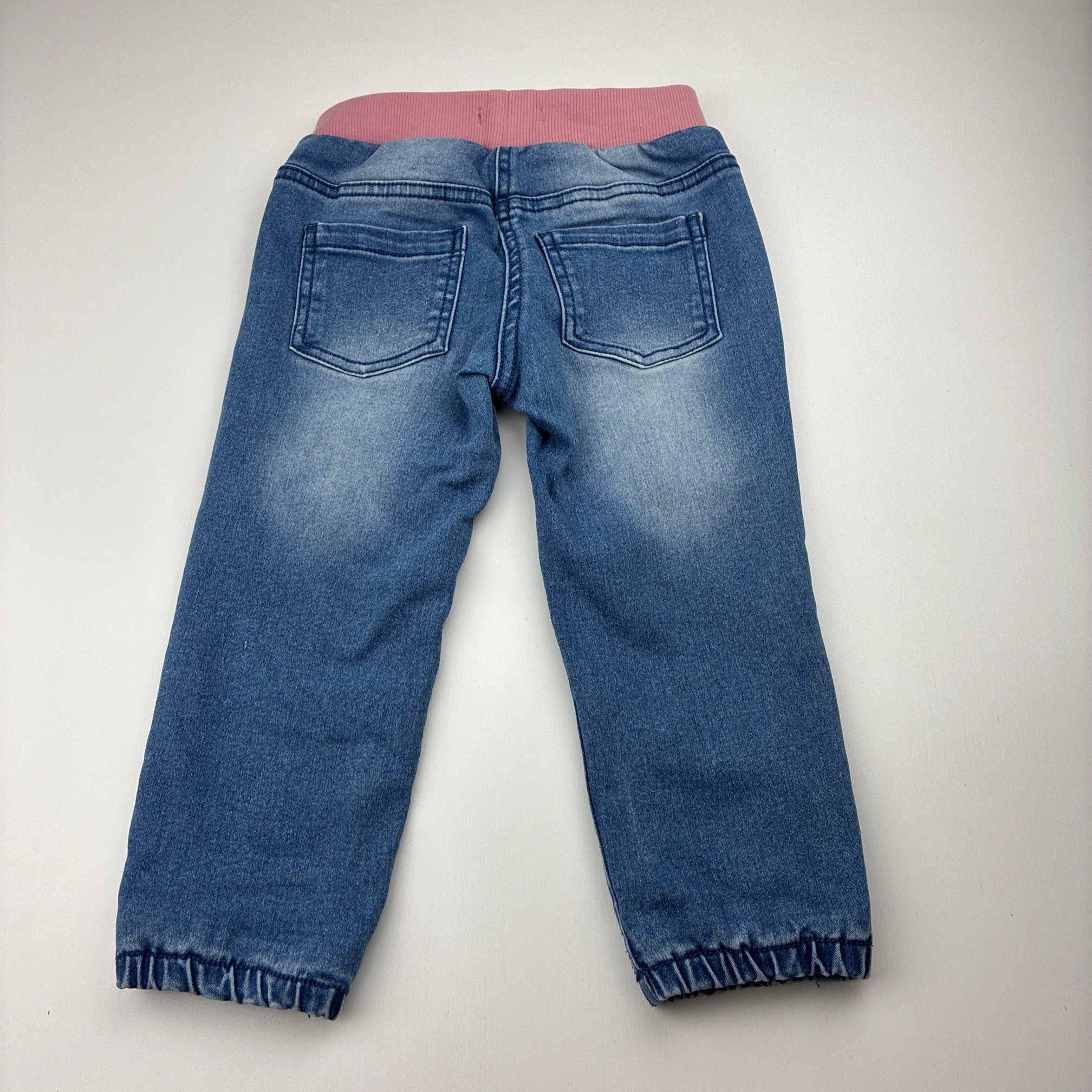 Higgledee, cotton lined stretch denim pants, elasticated, Inside leg: 32cm, FUC, size 1-2,