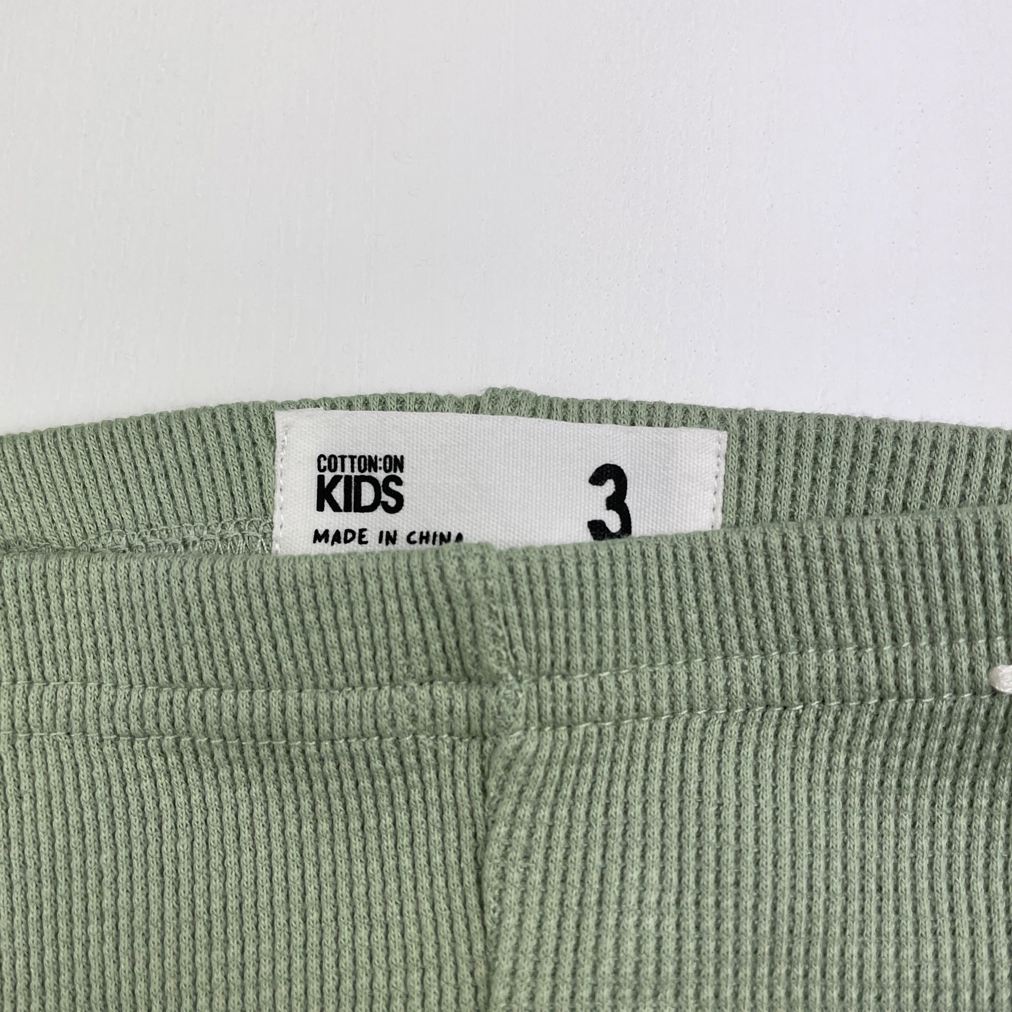 Cotton On, green waffle leggings, Inside leg: 36cm, FUC, size 3,