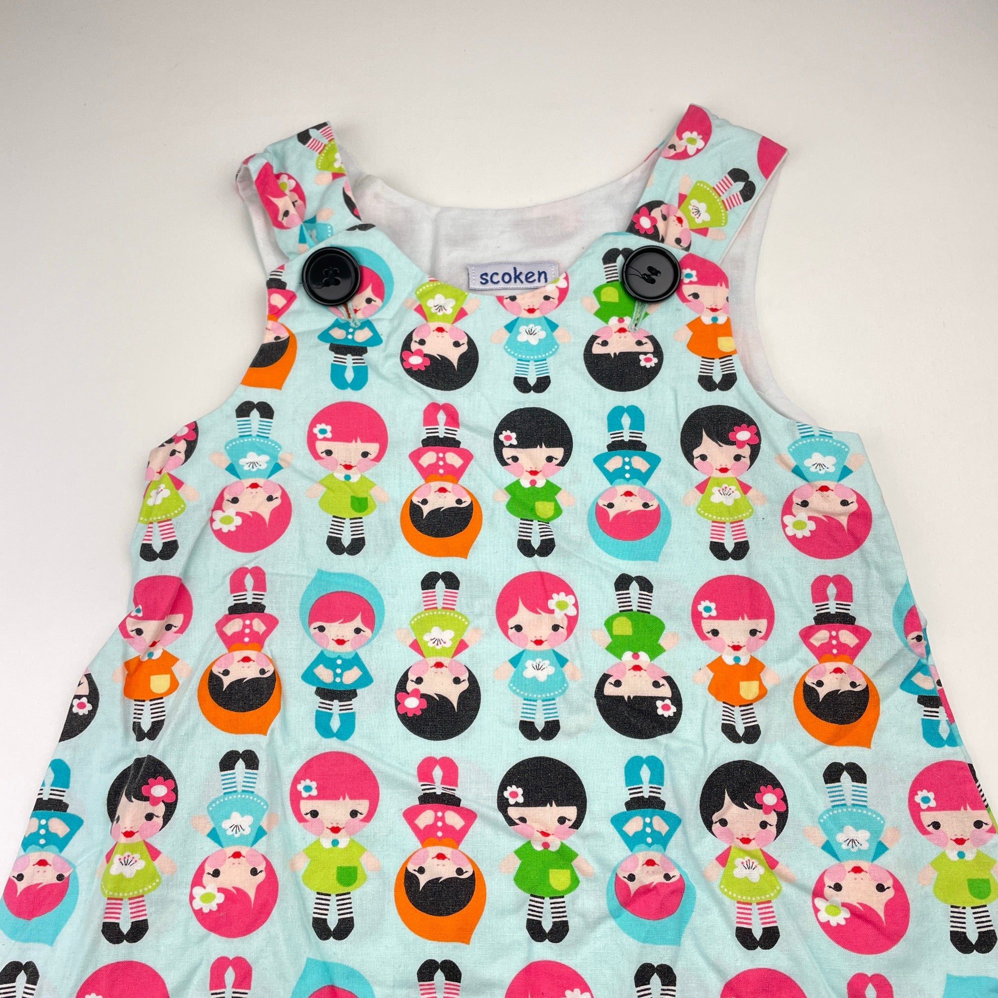 Scoken, handmade cotton dress, armpit to armpit: 28cm, GUC, size 3-4, L: 52cm