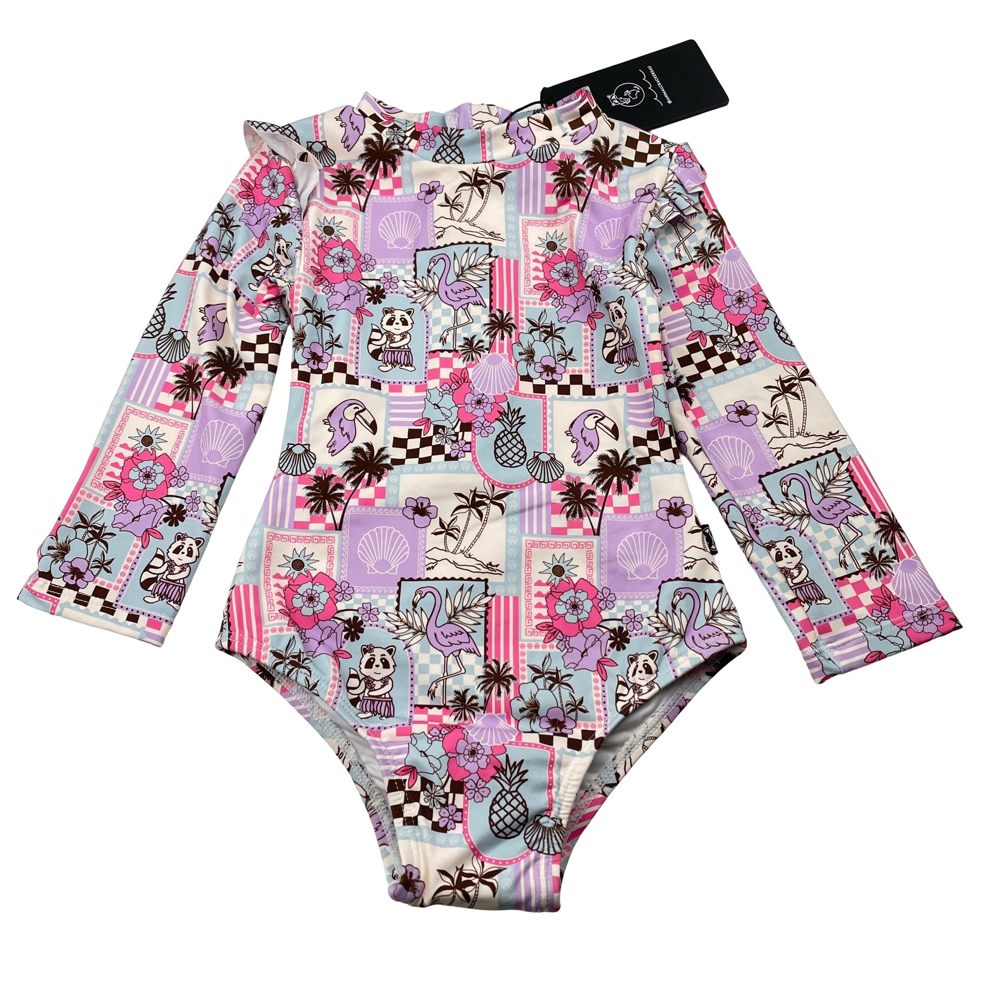 Girls ANIMAL CRACKERS, Ocean Breeze long sleeve swin one-piece, NEW, size 3,