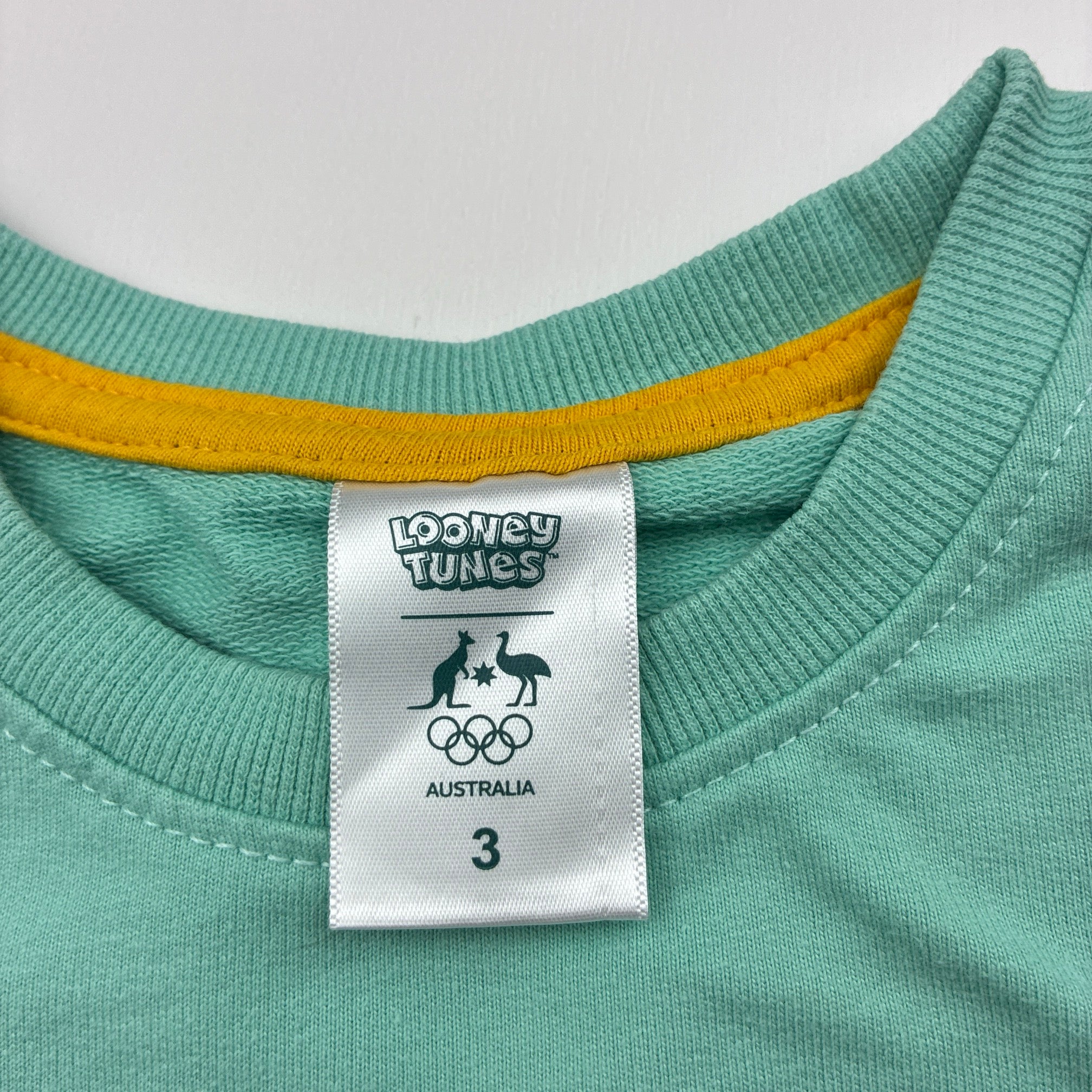 LOONEY TUNES, Australia Olympics sweater / jumper, marks front & right sleeve, FUC, size 3,