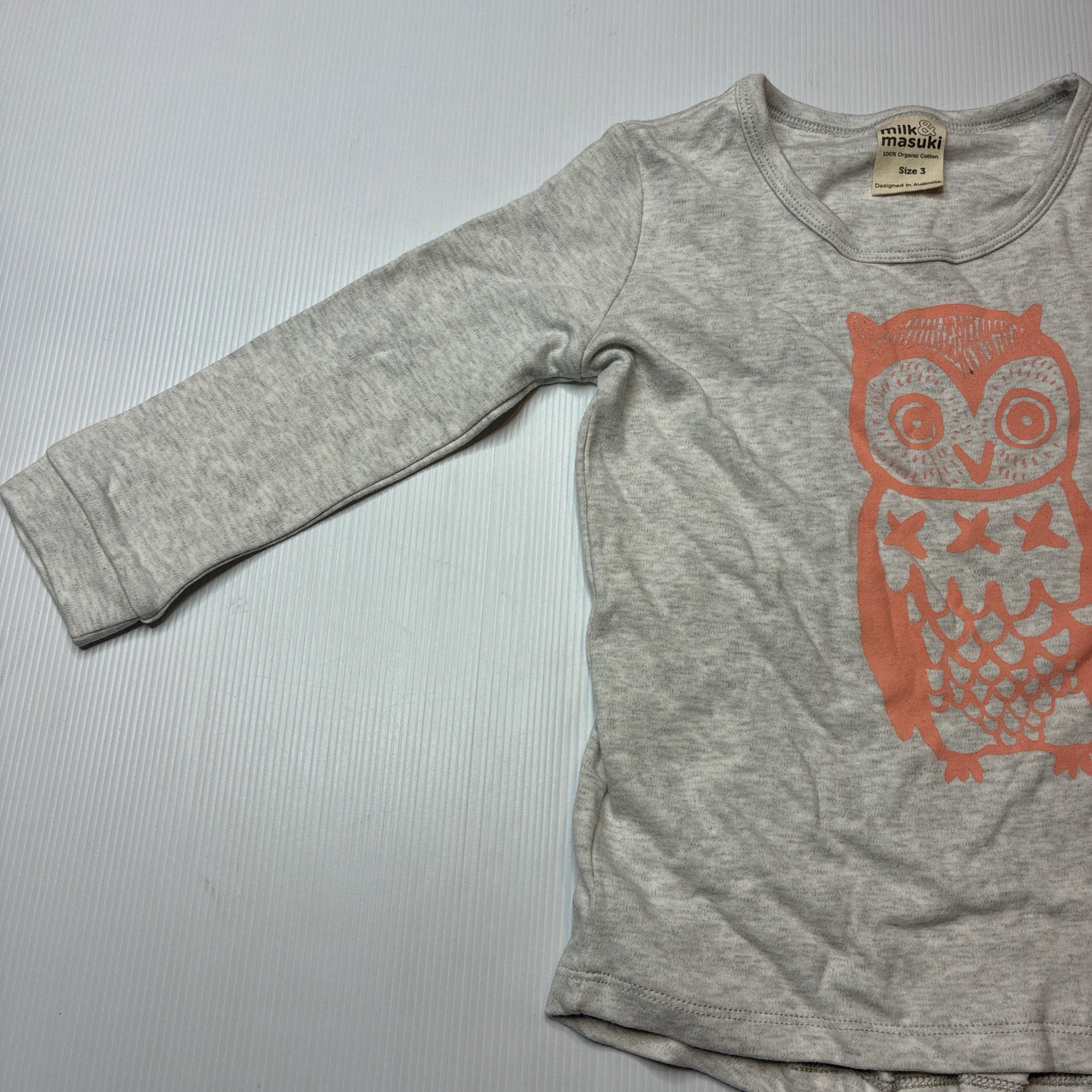Milk & Masuki, soft feel organic cotton long sleeve top, owl, EUC, size 3,