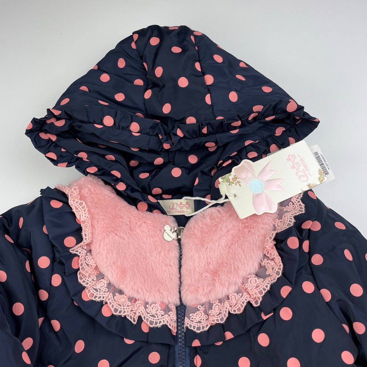 QQBB, navy & pink spot puffer jacket/coat, NEW, size 4,