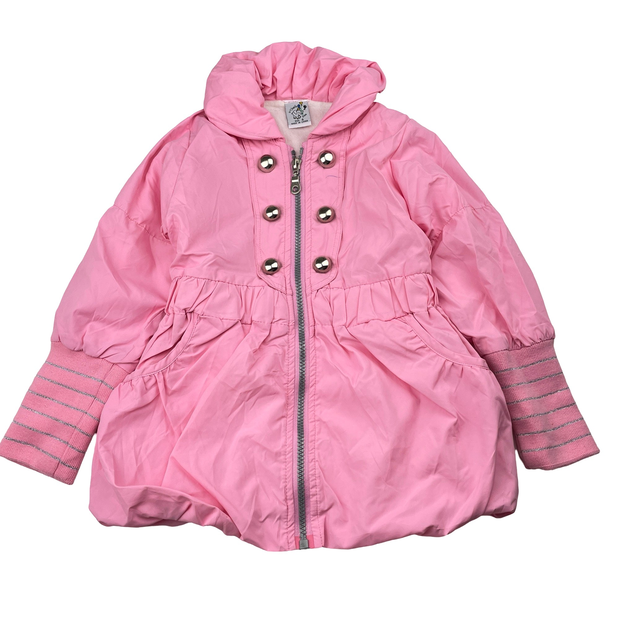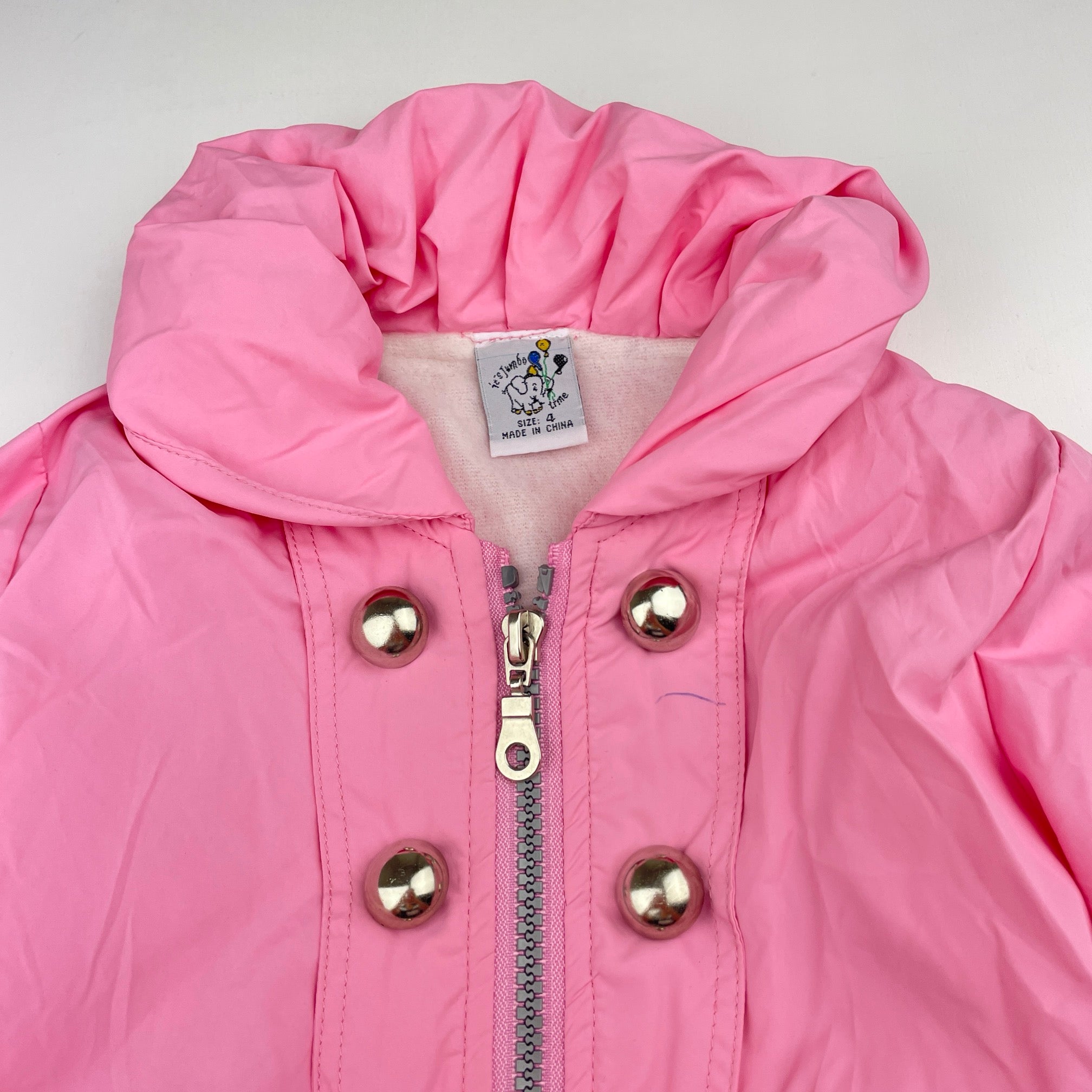 Its Jumbo Time, pink lightweight jacket / coat, L: 43cm, mark on chest, FUC, size 4,