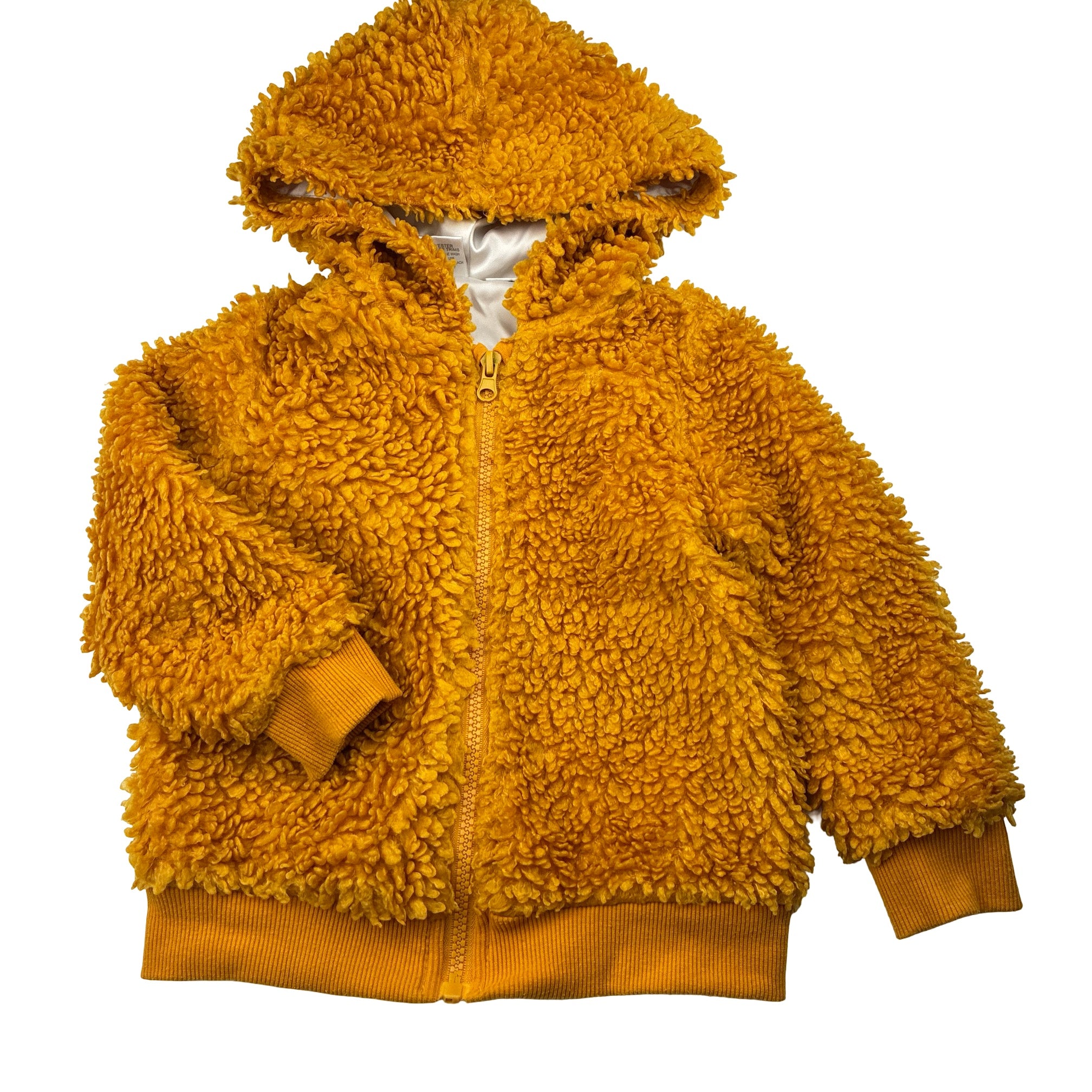 Mango, yellow fleece hooded jacket, GUC, size 4,