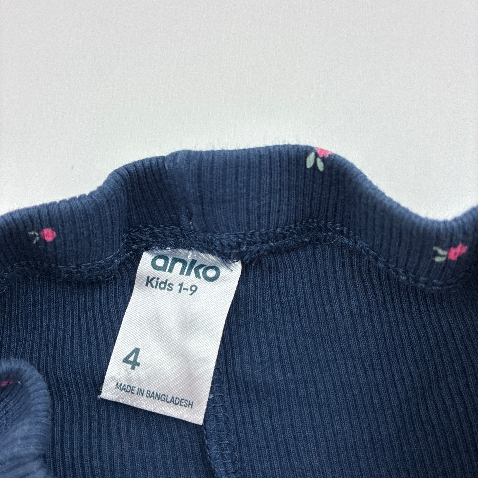 Anko, navy floral ribbed leggings, Inside leg: 38cm, EUC, size 4,