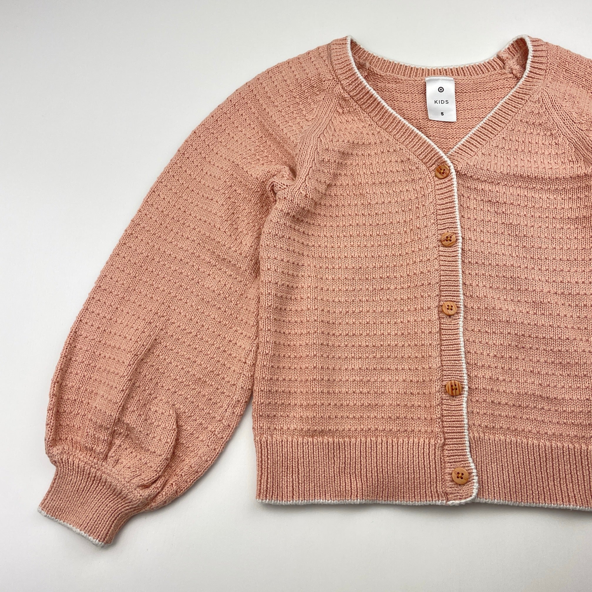 Target cotton knit balloon sleeve cardigan, size 5, Pre-loved