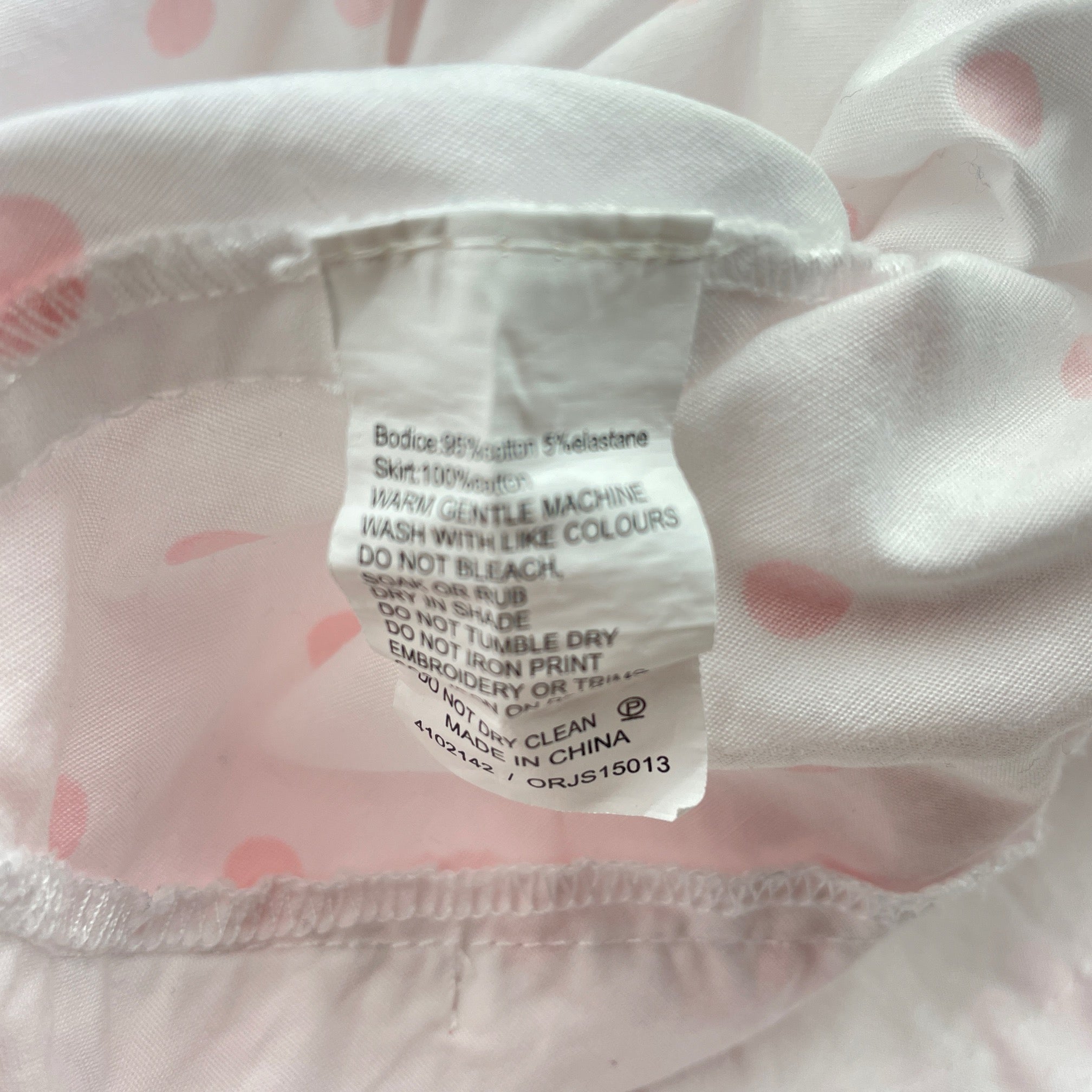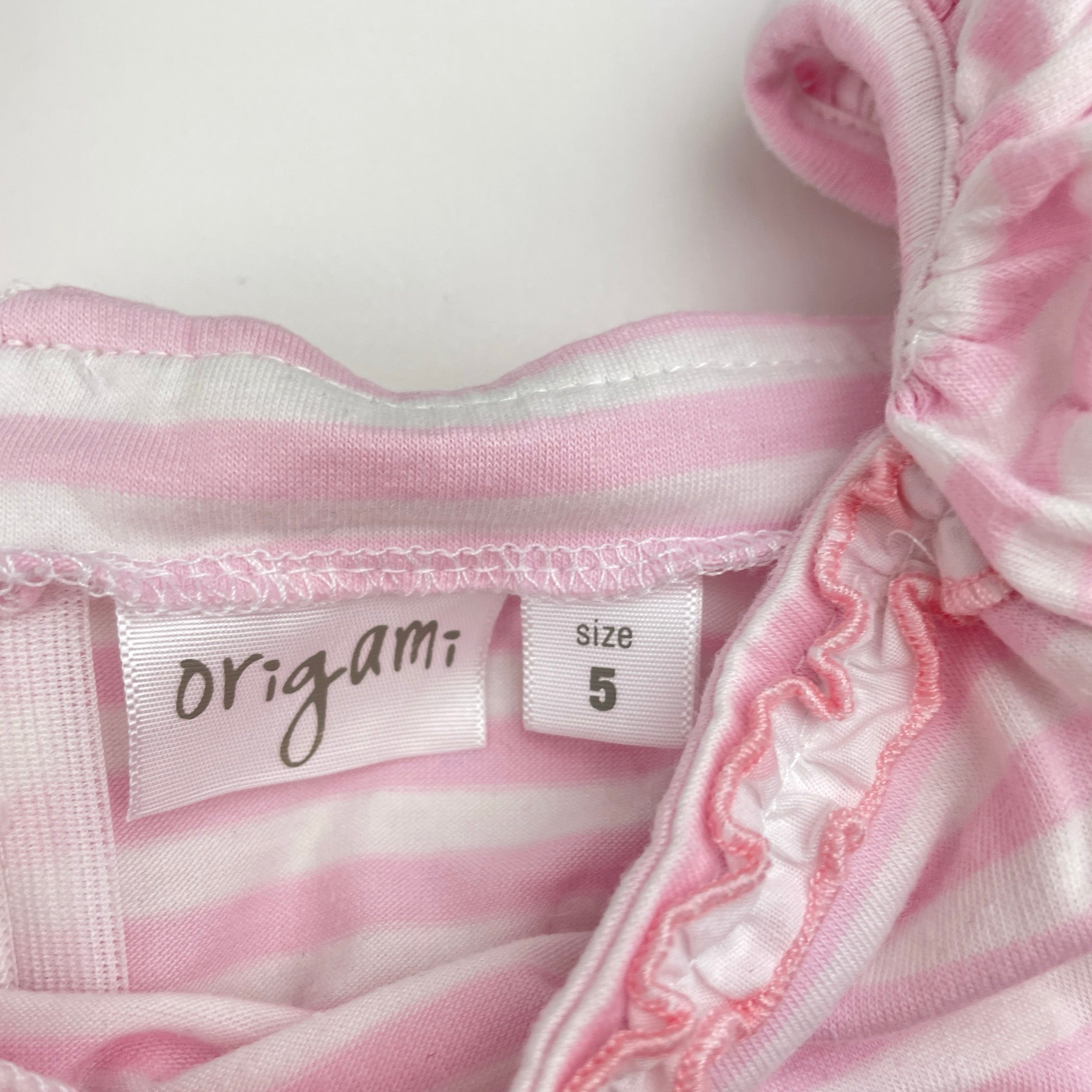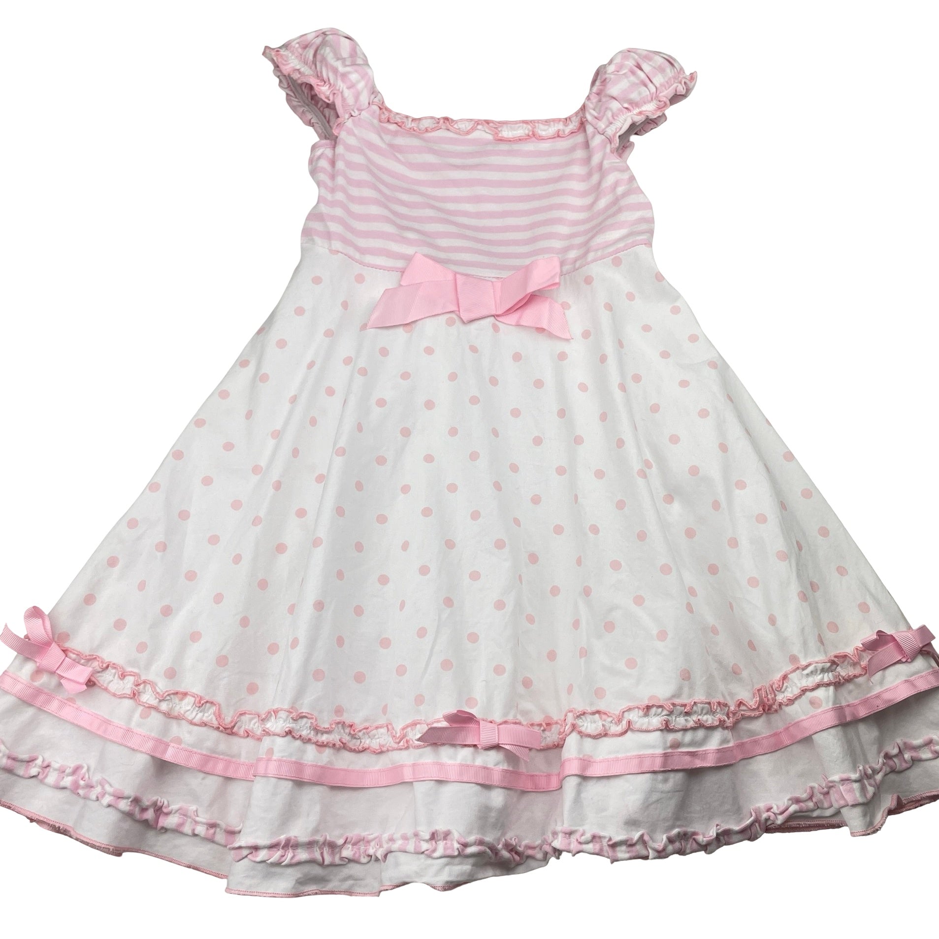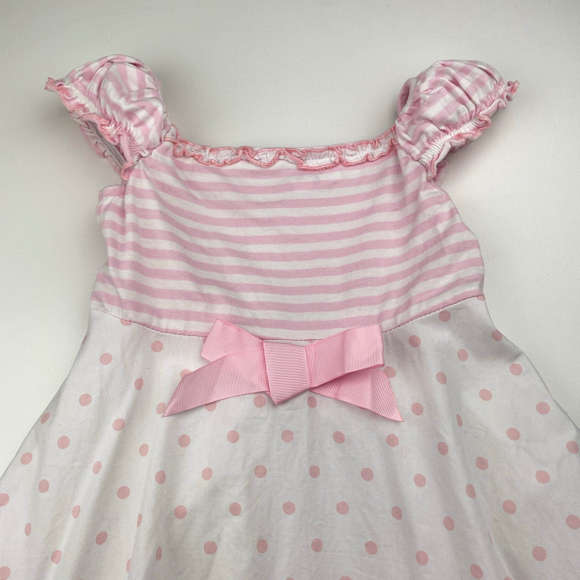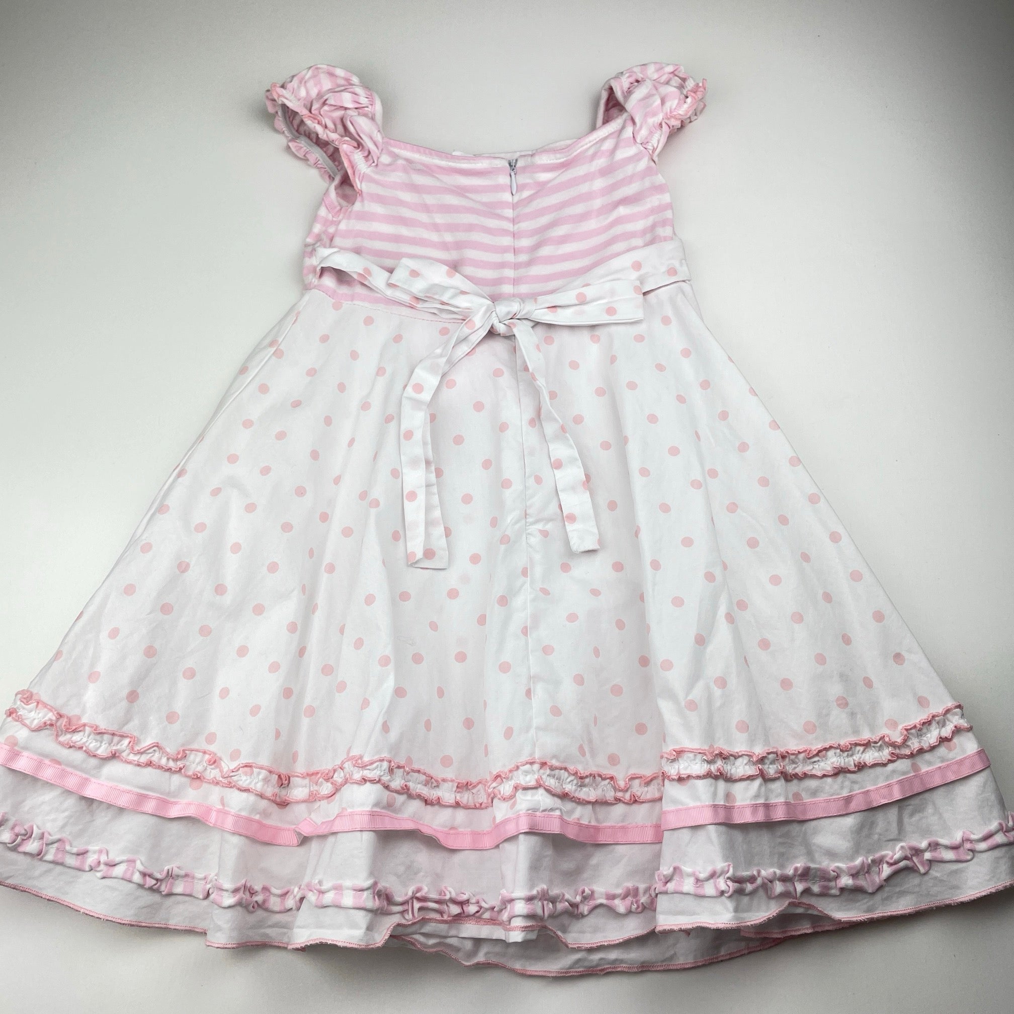 Origami, pink & white cotton party dress, GUC, size 5, L: 56cm