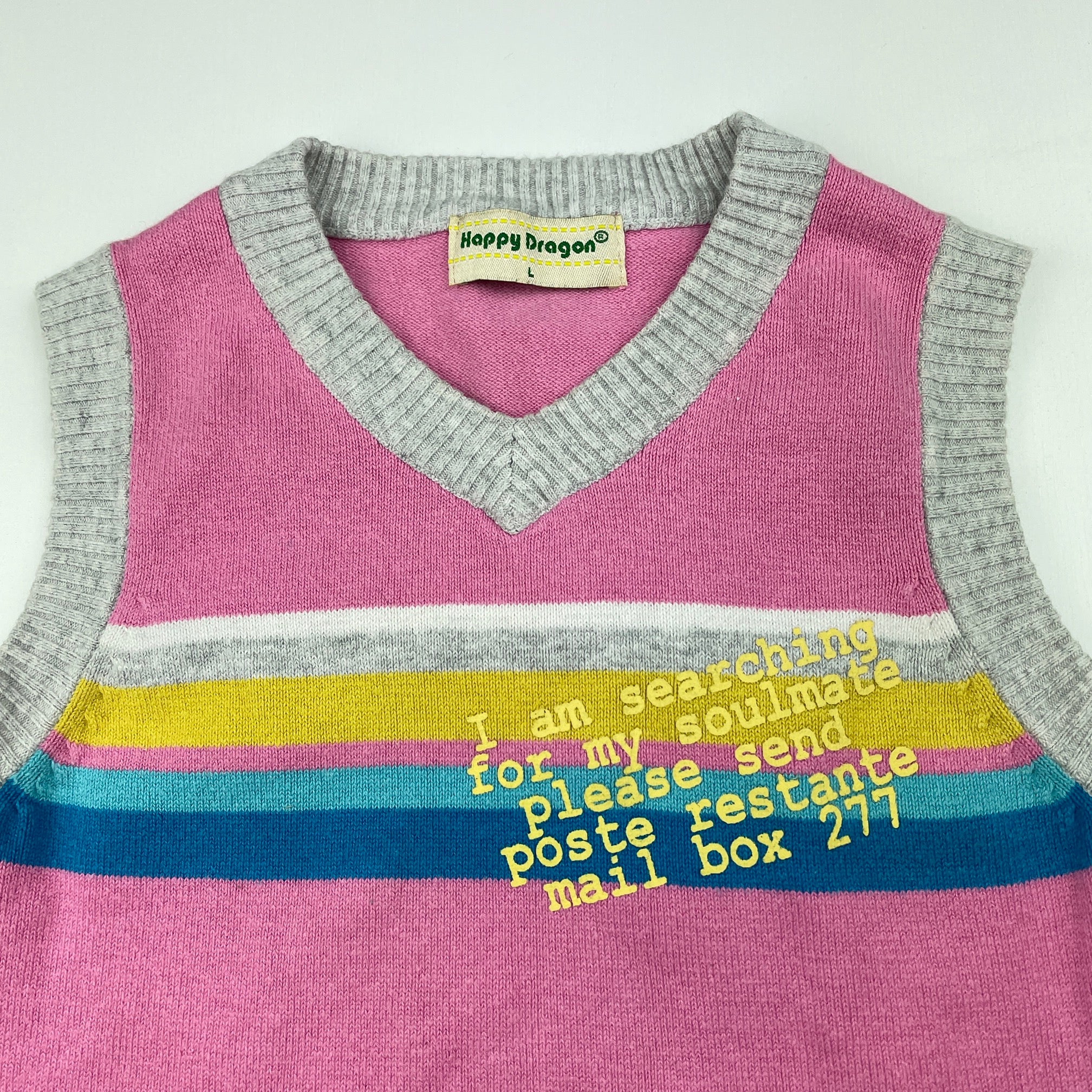 Happy Dragon, knitted vest / sleeveless sweater, armpit to armpit: 30cm, no size, EUC, size 5-6,