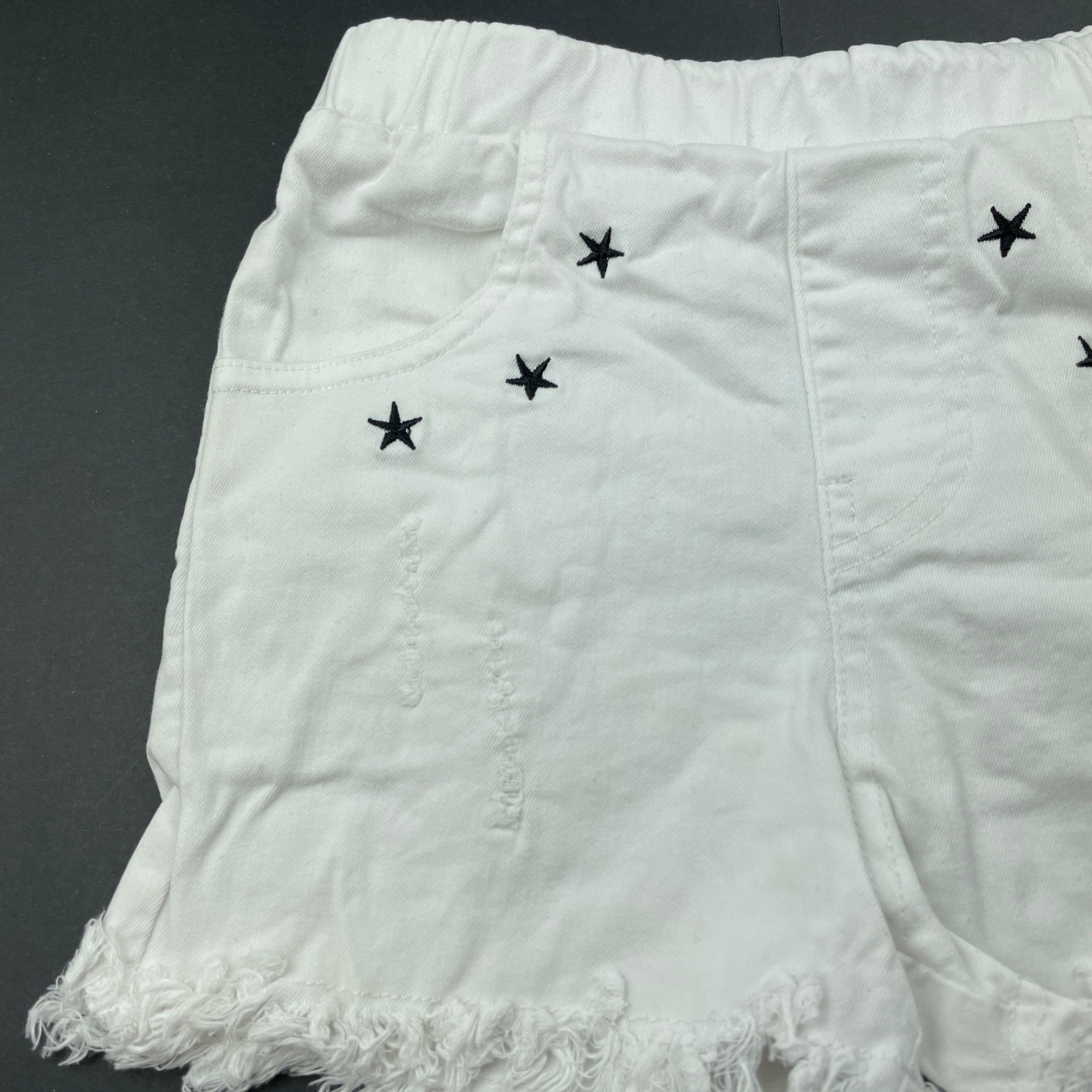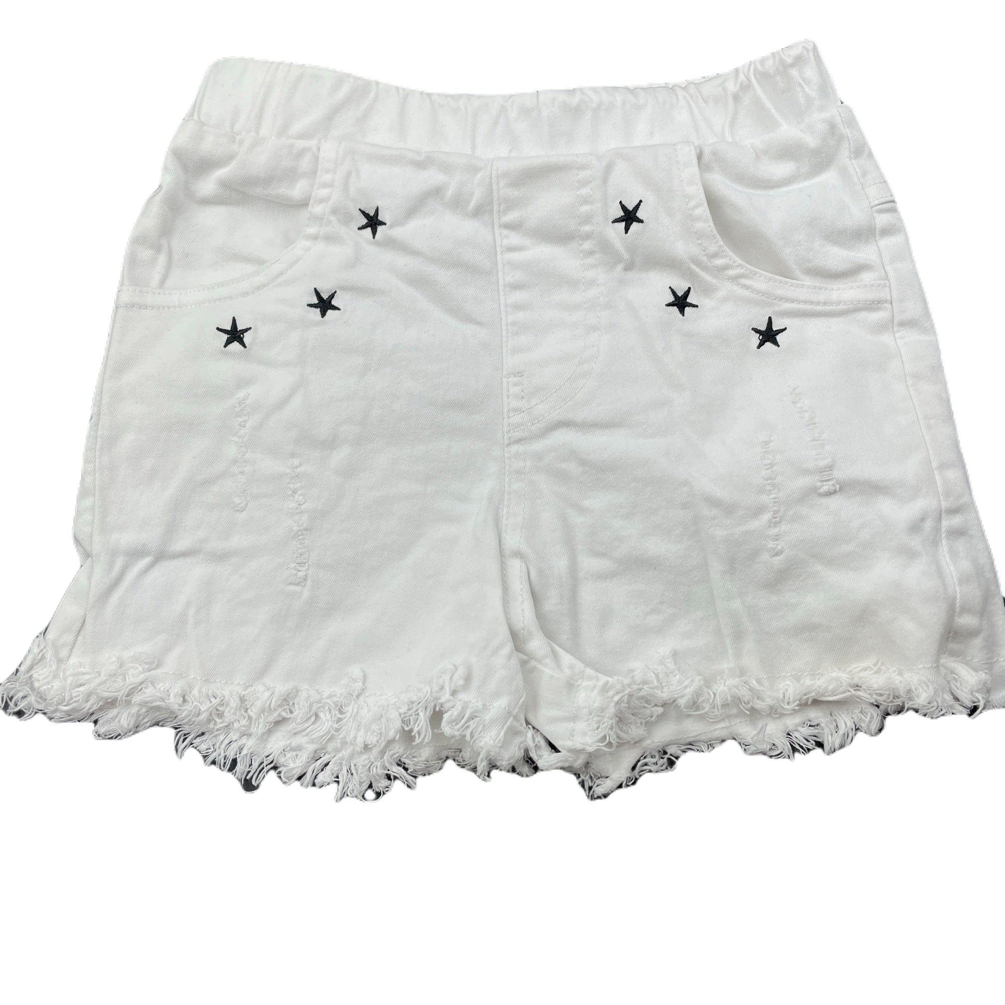 YDYT, embroidered distressed stretch cotton shorts, elasticated, EUC, size 6,