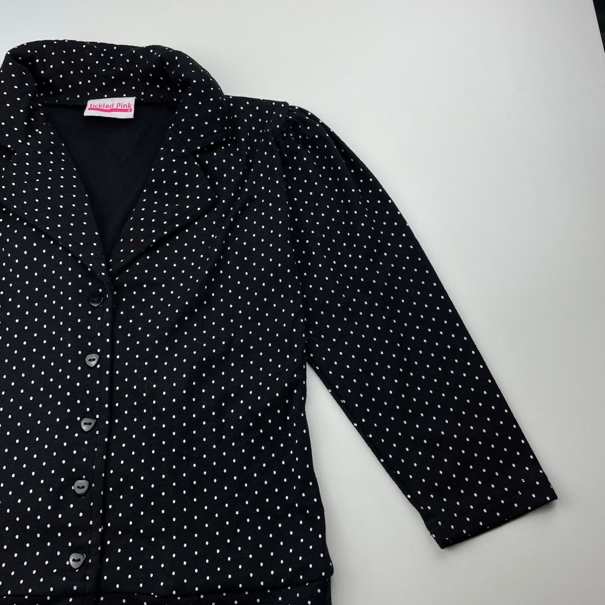 Tickled Pink, black & white spot lightweight jacket / top, EUC, size 6,