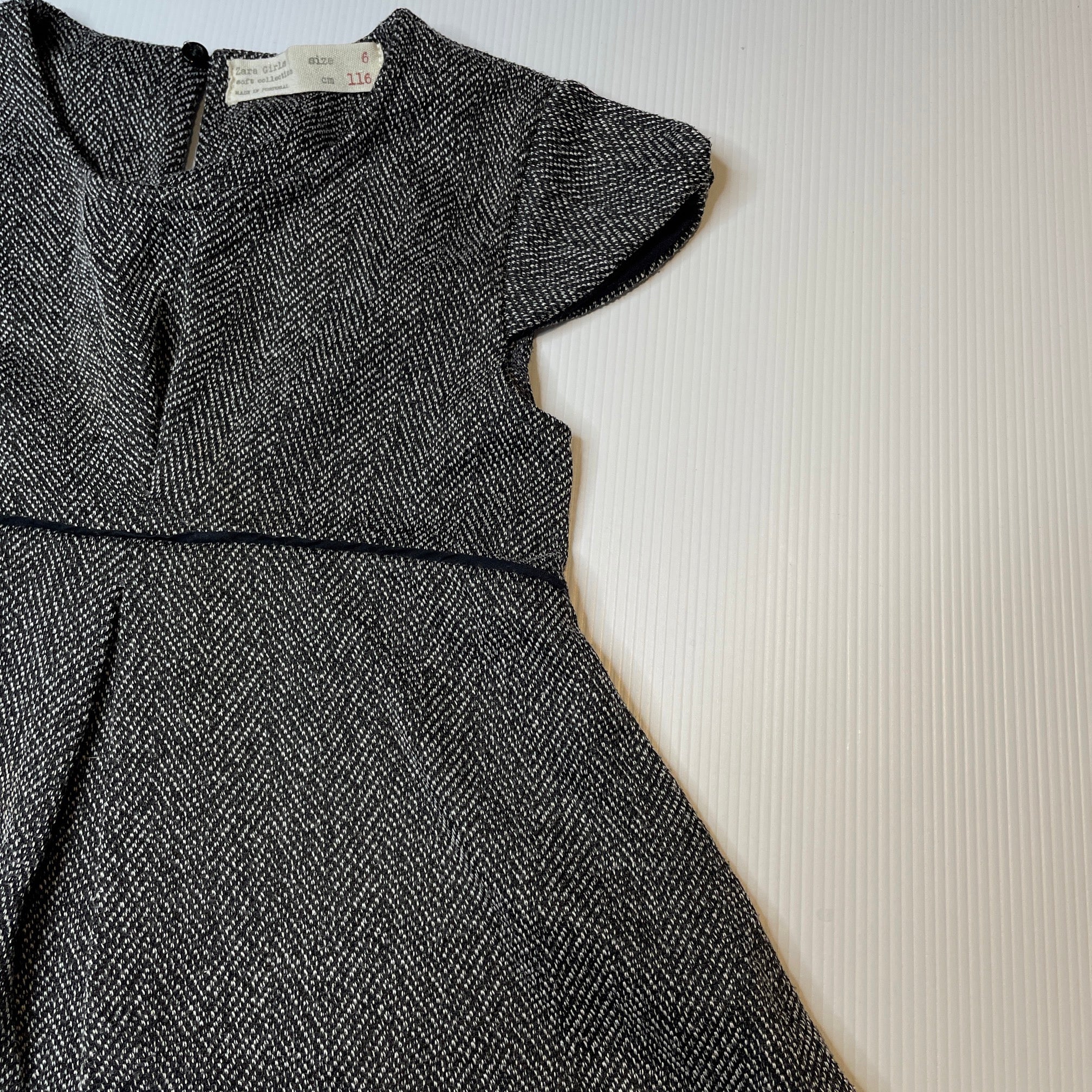 Girls Zara, black & white short sleeve dress, GUC, size 6, L: 54cm
