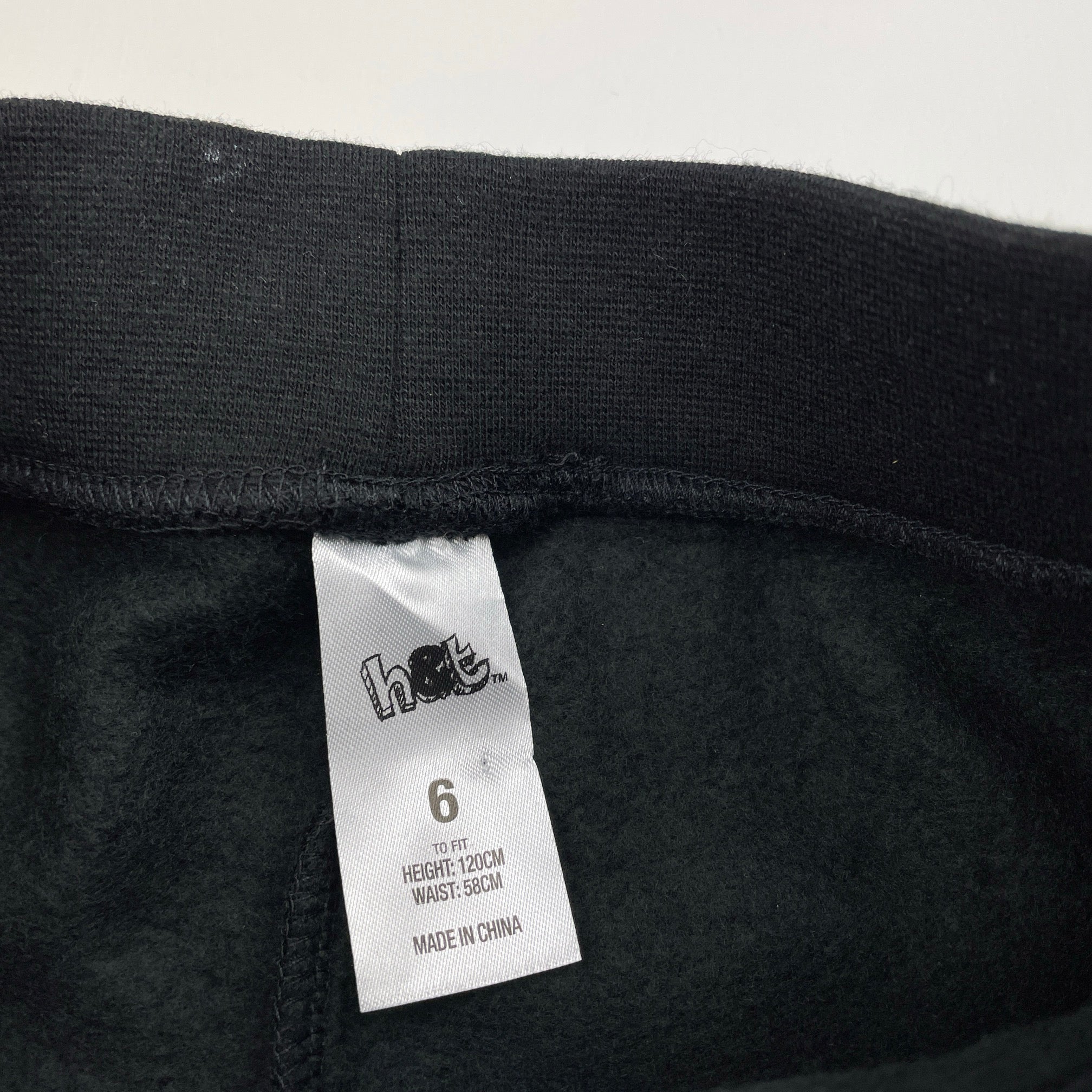 H&M, black fleece lined track pants, Inside leg: 47.5cm, EUC, size 6,