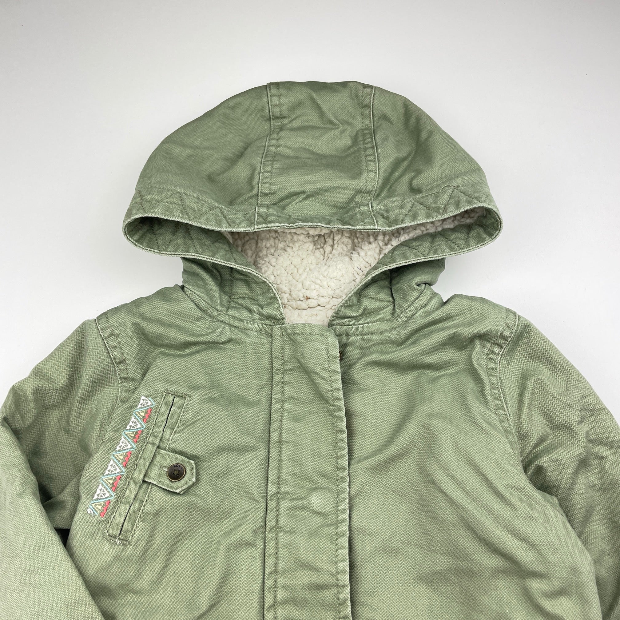 Roxy, fleece lined khaki cotton jacket / coat, GUC, size 6,