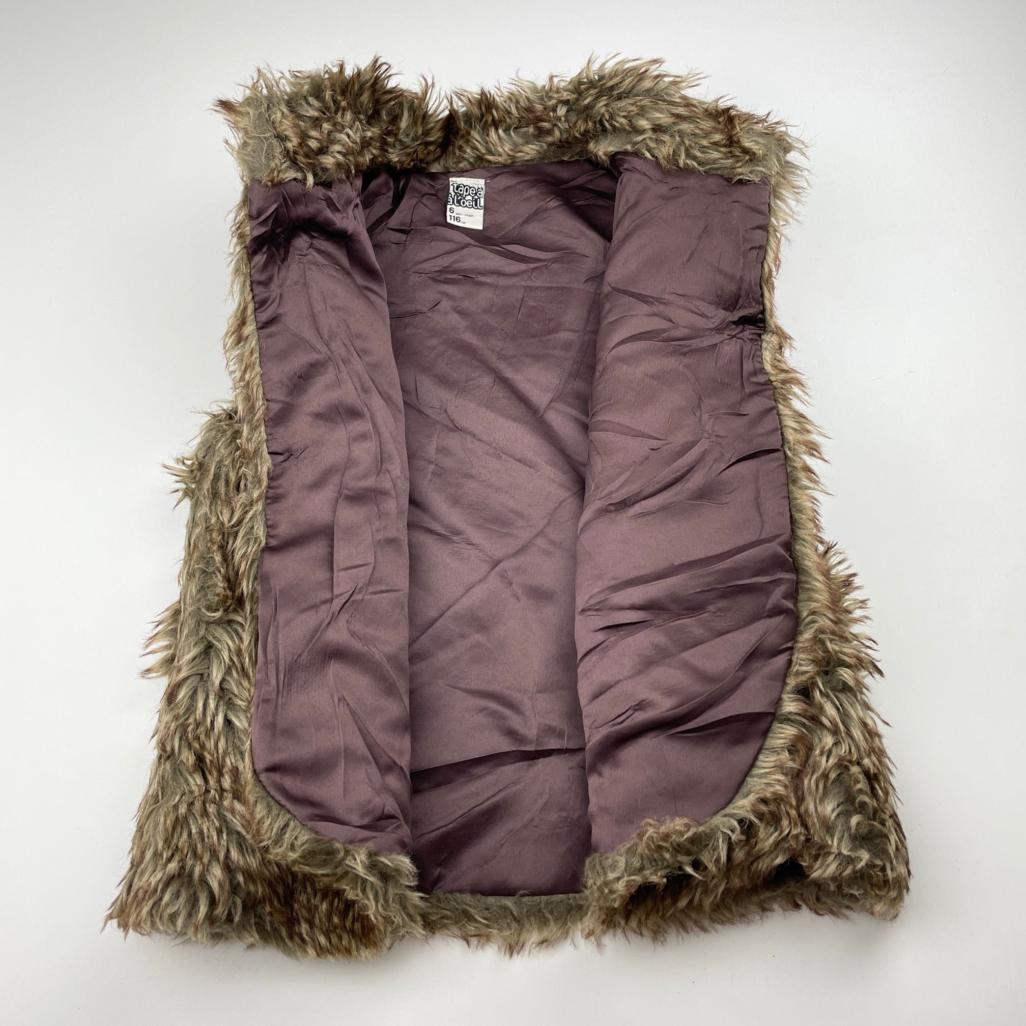 Tape a L'Oeil, lined faux fur vest, open style (no fastening), GUC, size 6,