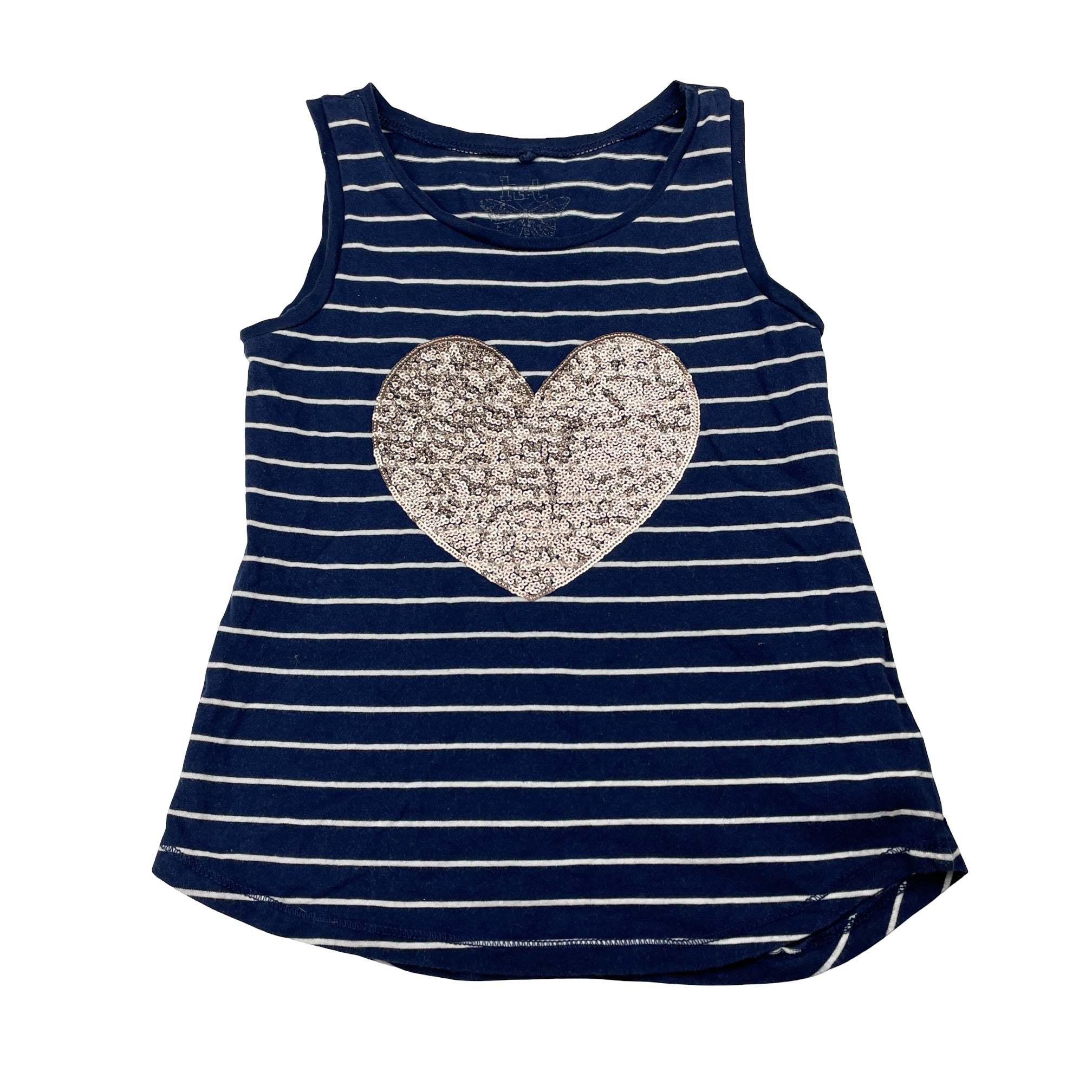 H&T, navy cotton singlet / tank top, sequin heart, GUC, size 6,