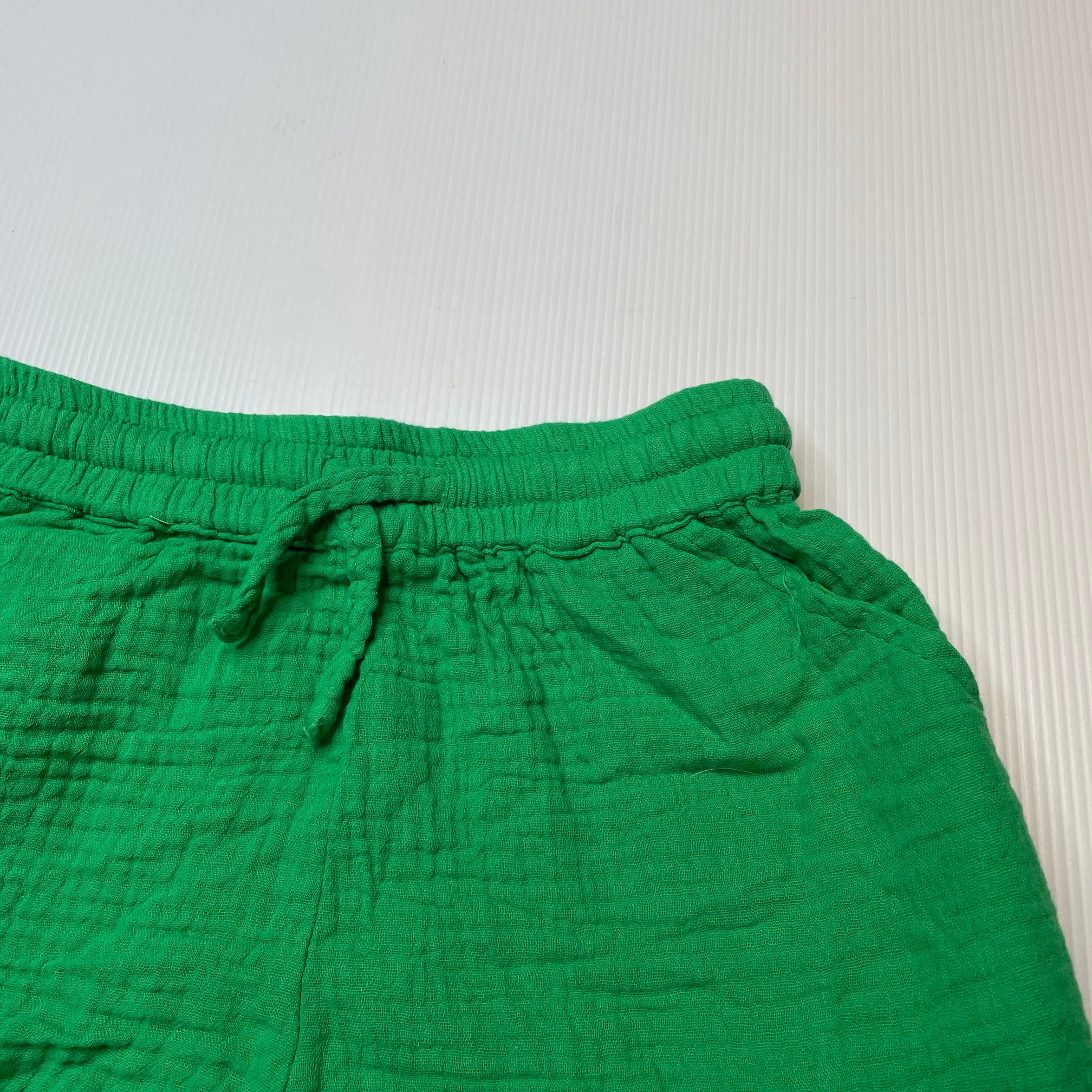 Girls Cotton On, green crinkle cotton shorts, elasticated, GUC, size 6,