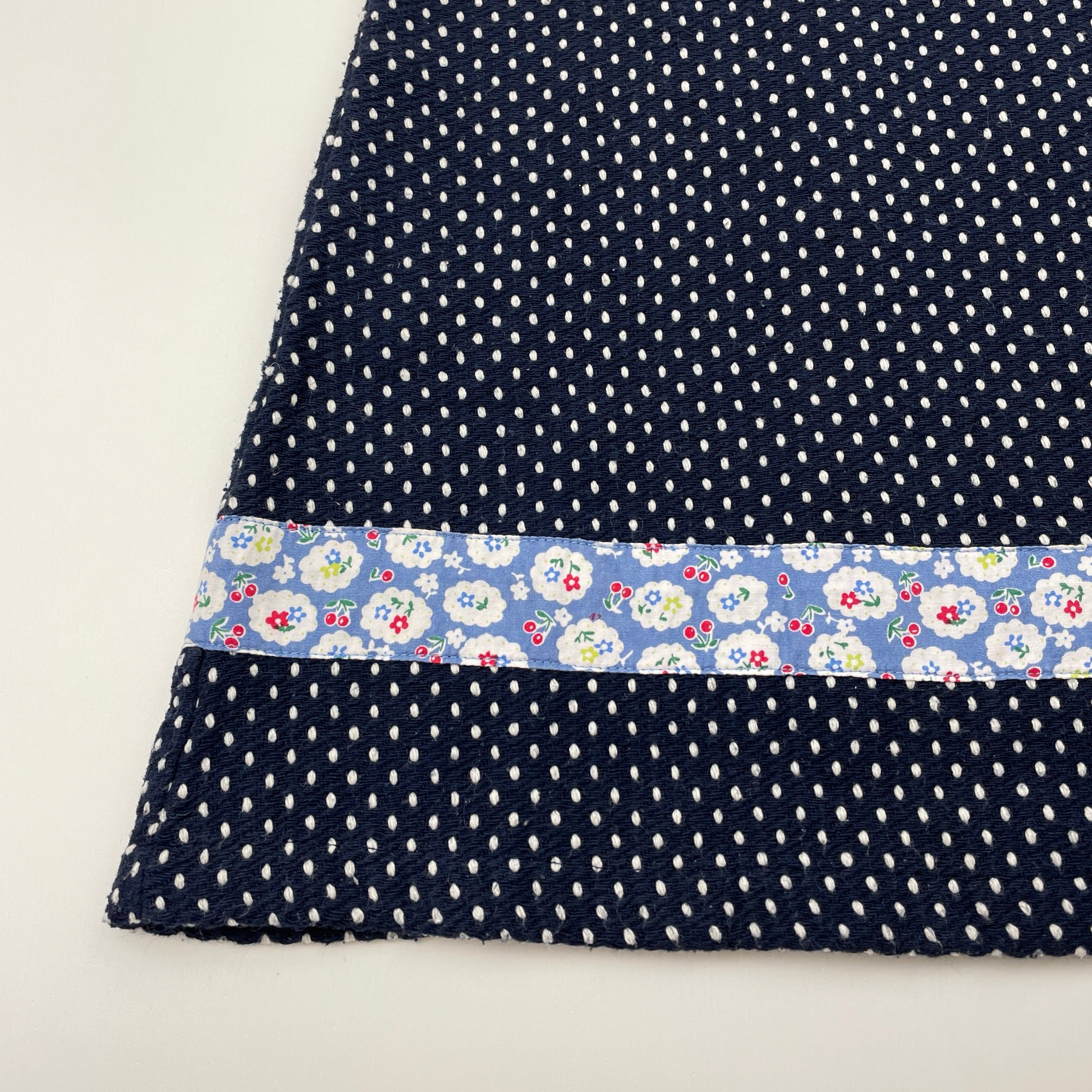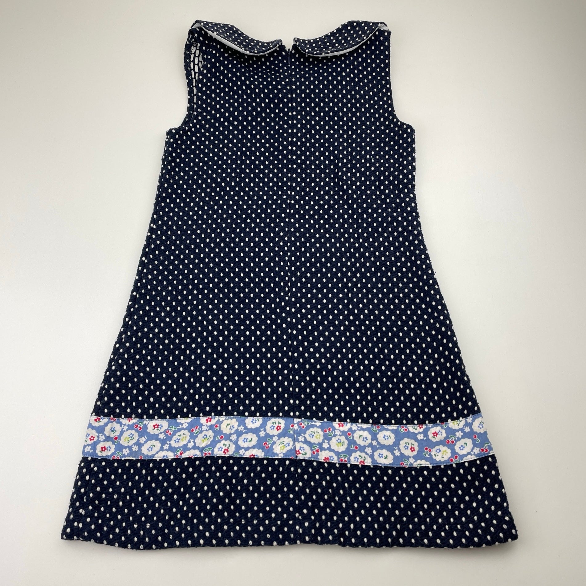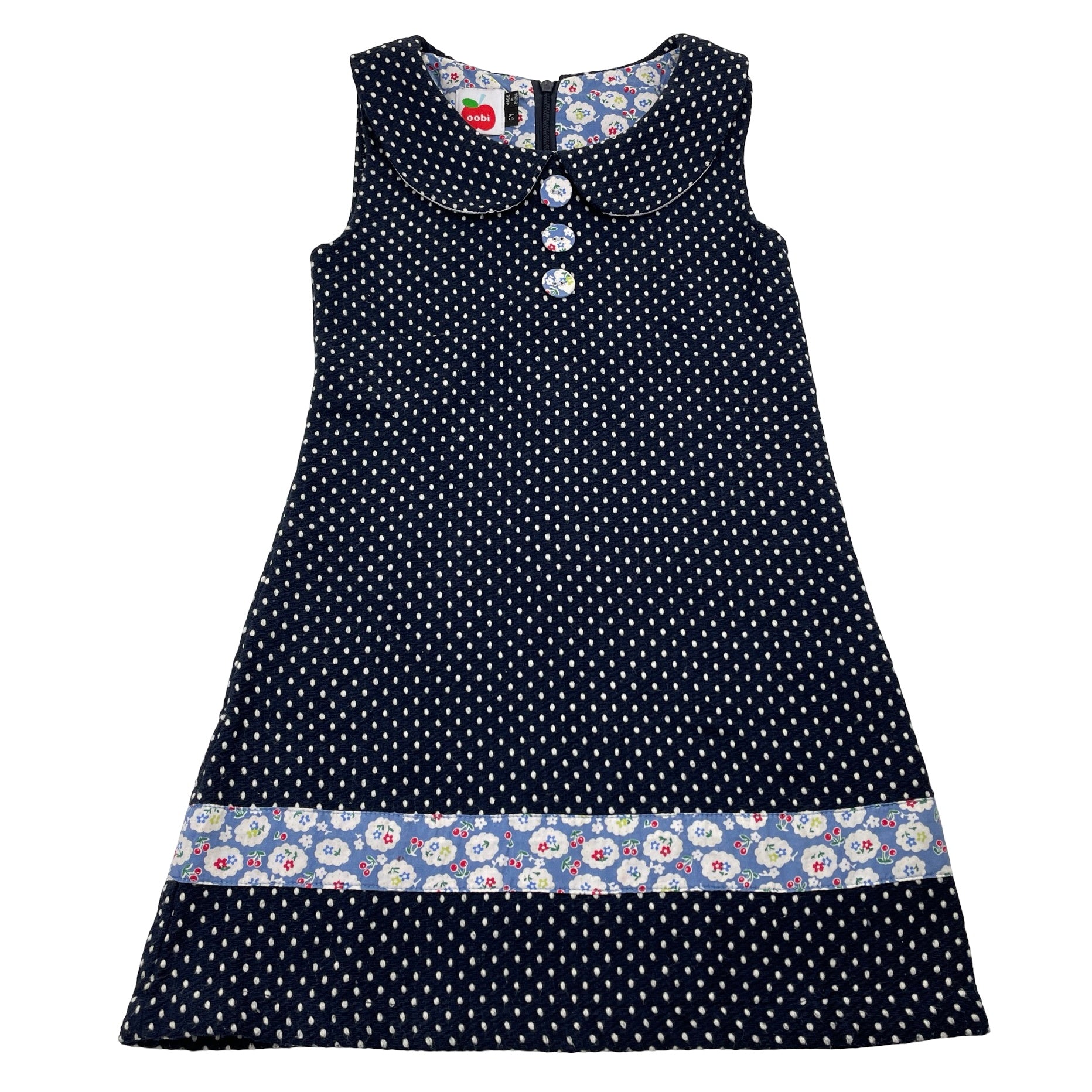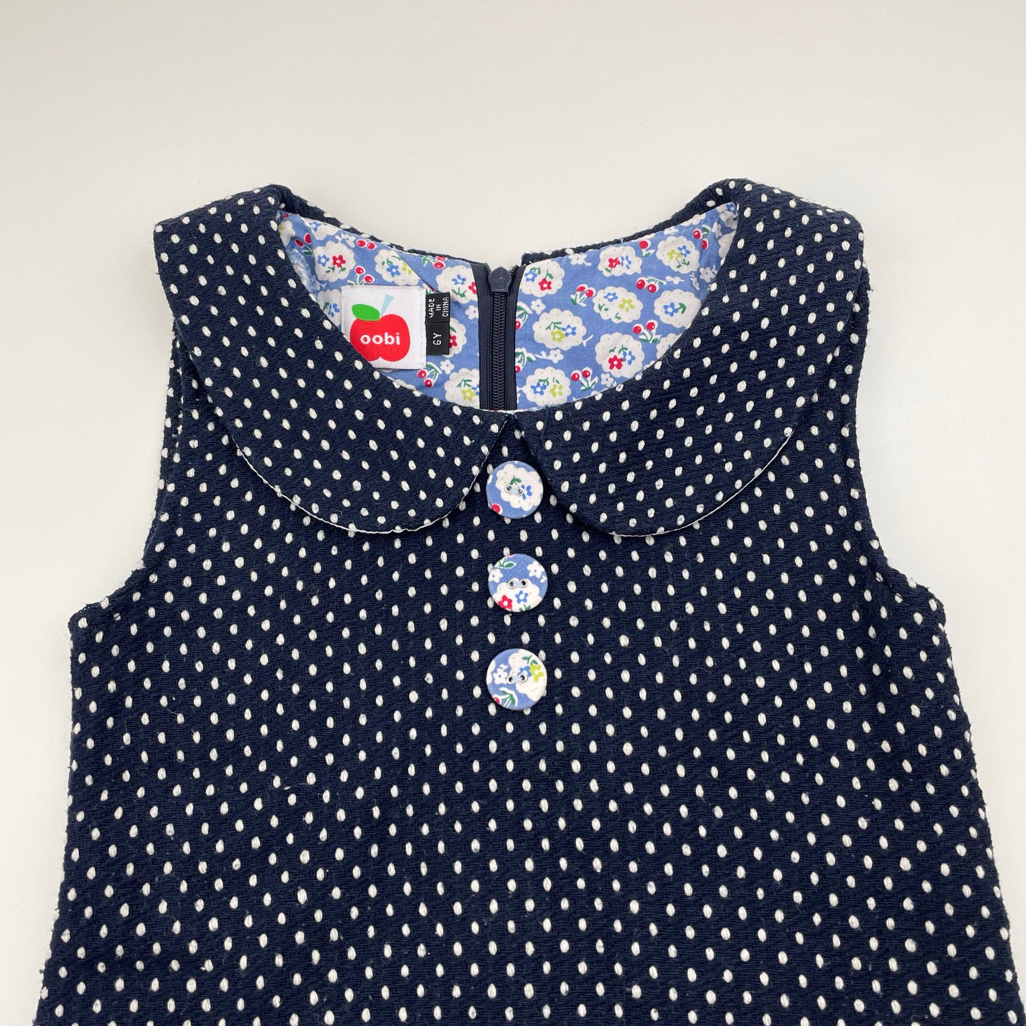 Oobi, navy & white spot woven dress, GUC, size 6, L: 59cm