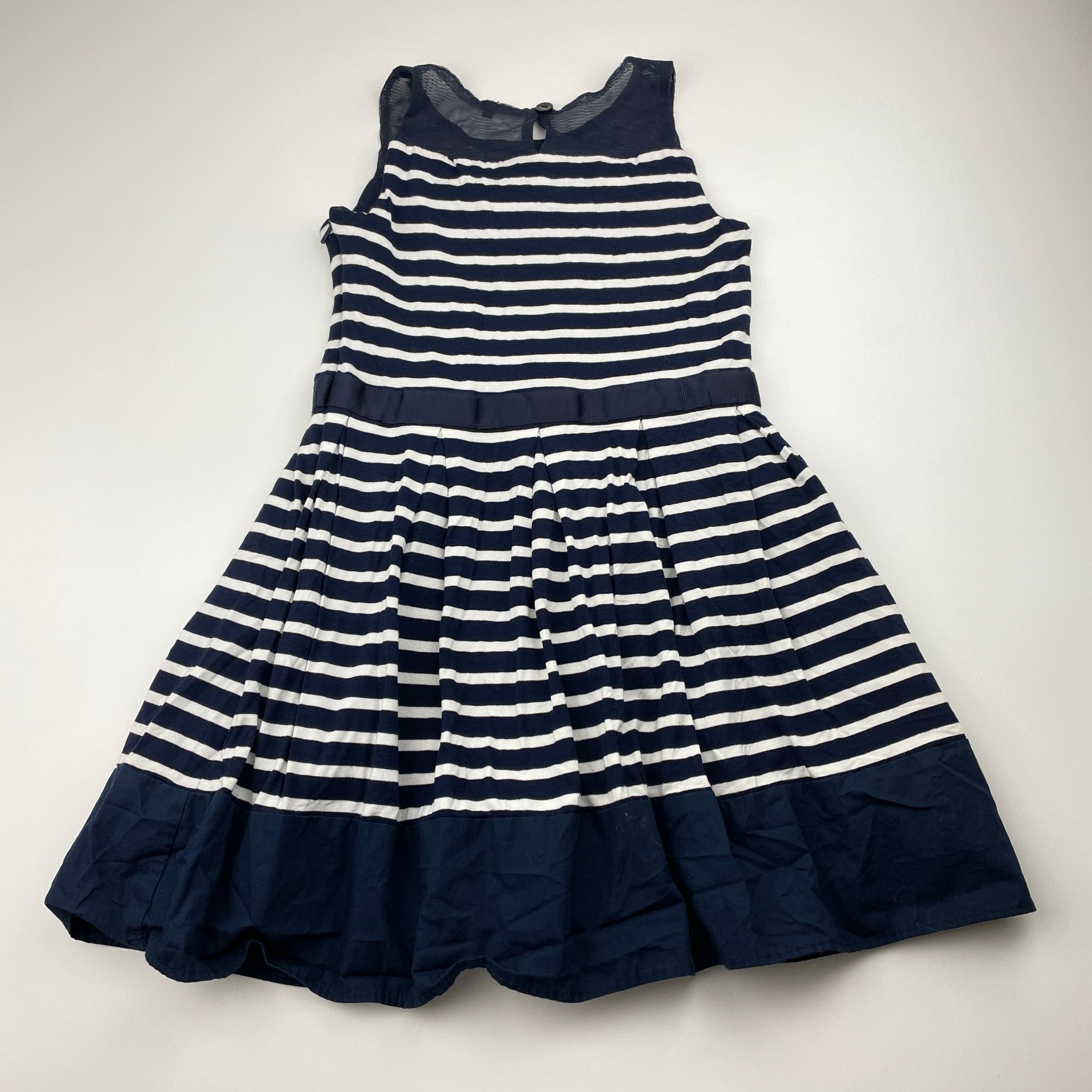 Next, navy & white stripe party dress, EUC, size 6, L: 57cm