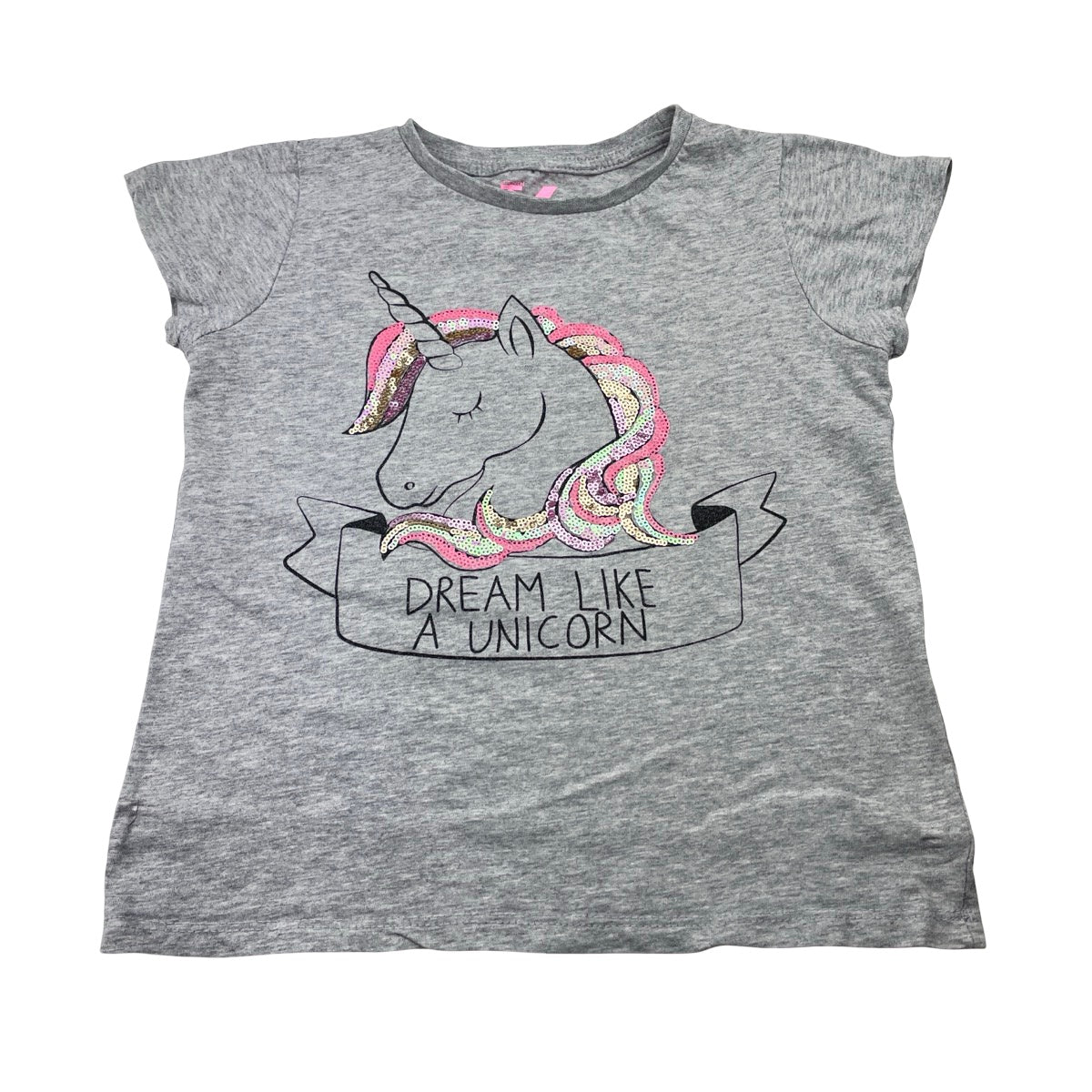 Cotton On, grey marle tee / top, sequin unicorn, GUC, size 6,