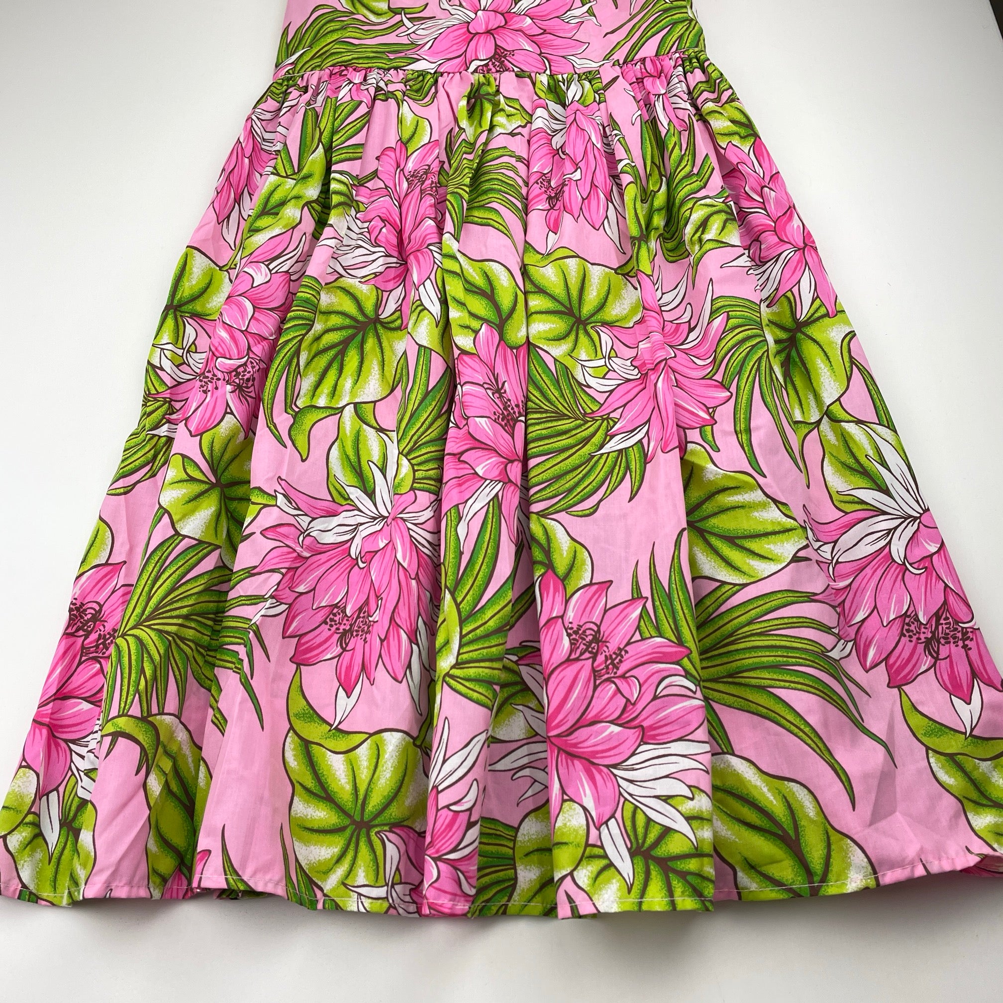 floral, lightweight summer dress, no labels, armpit-armpit: 32.5cm, EUC, size 7-8, L: 80cm