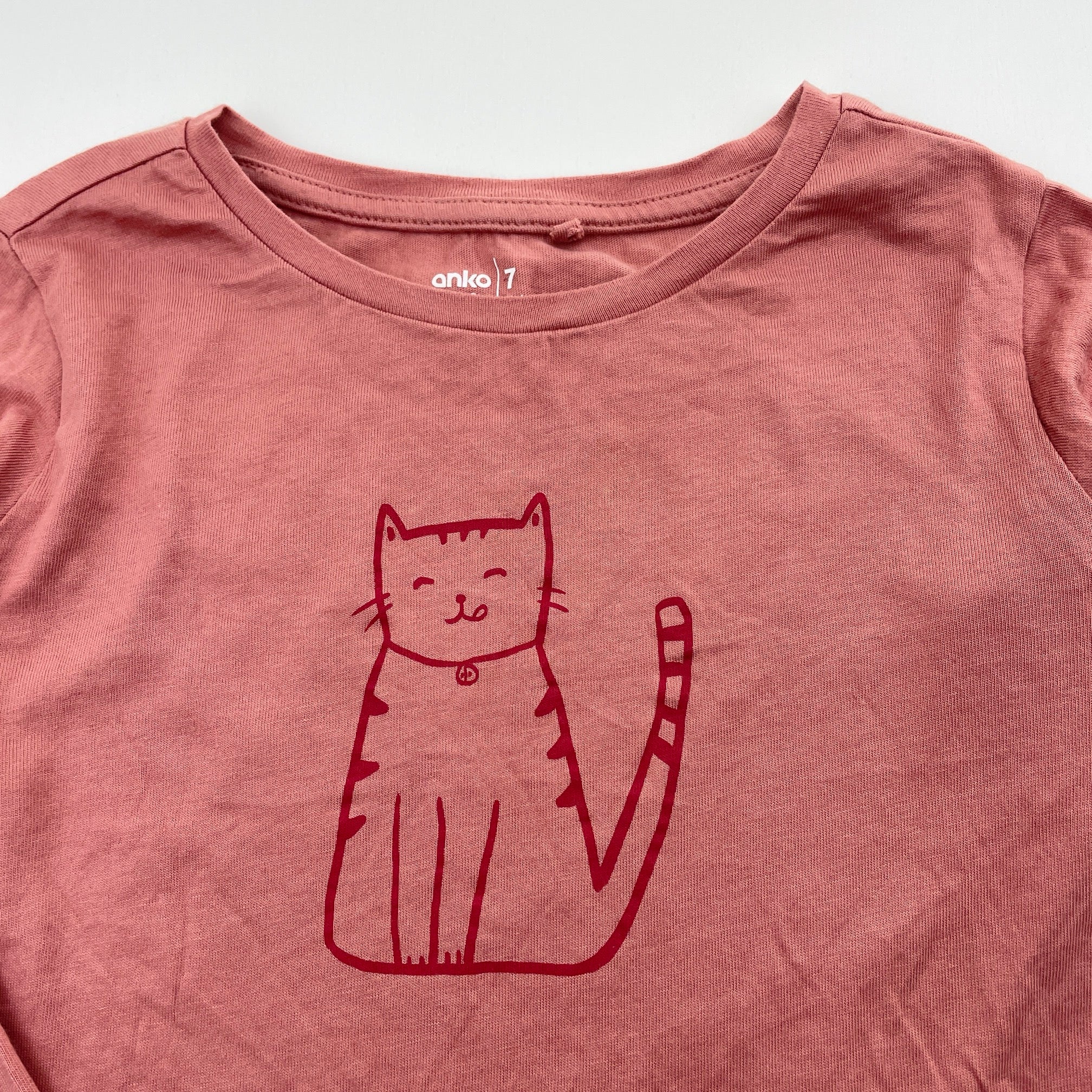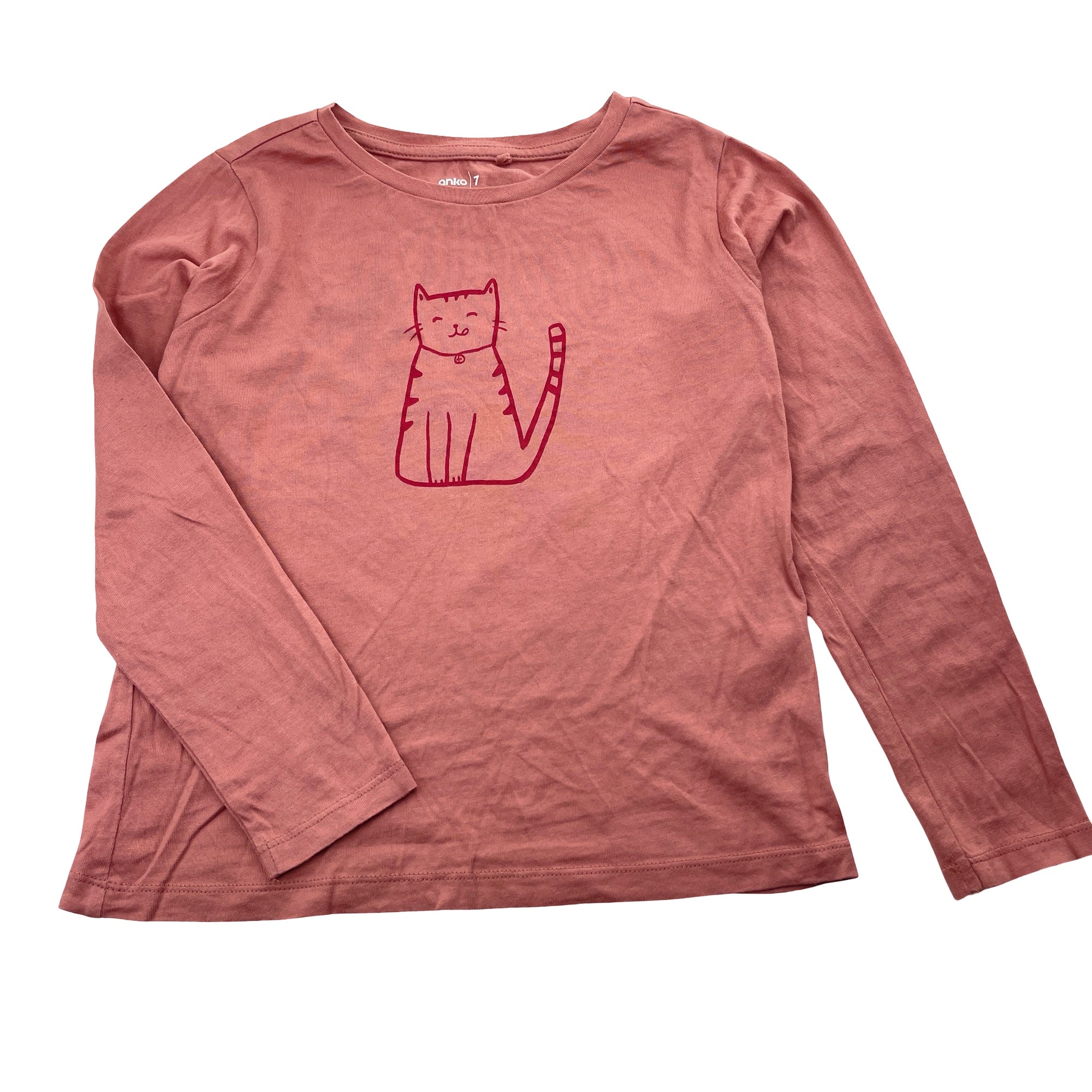 Anko, cotton long sleeve tee / top, cat, FUC, size 7,