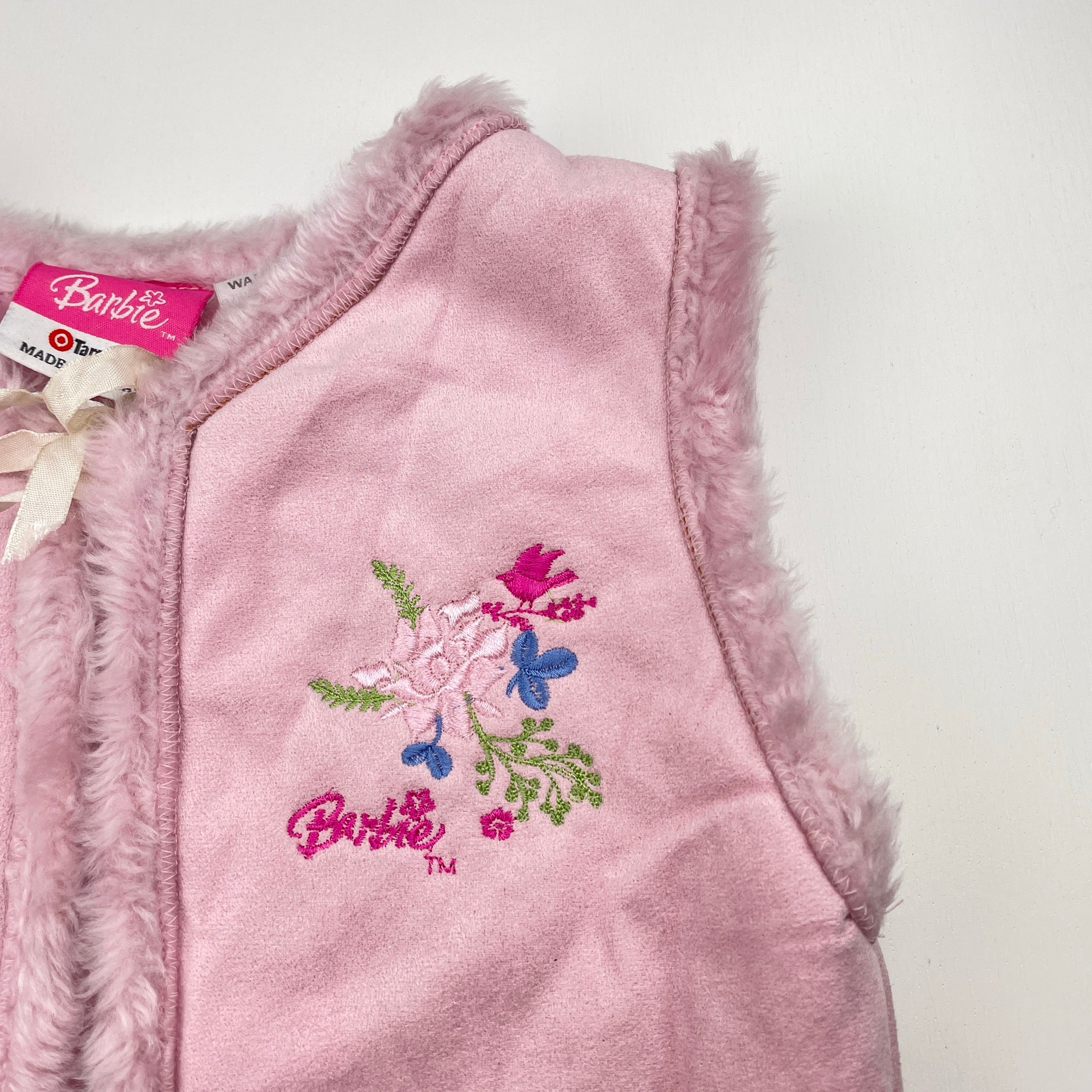 Barbie vintage embroidered faux suede vest, size 7, Pre-loved