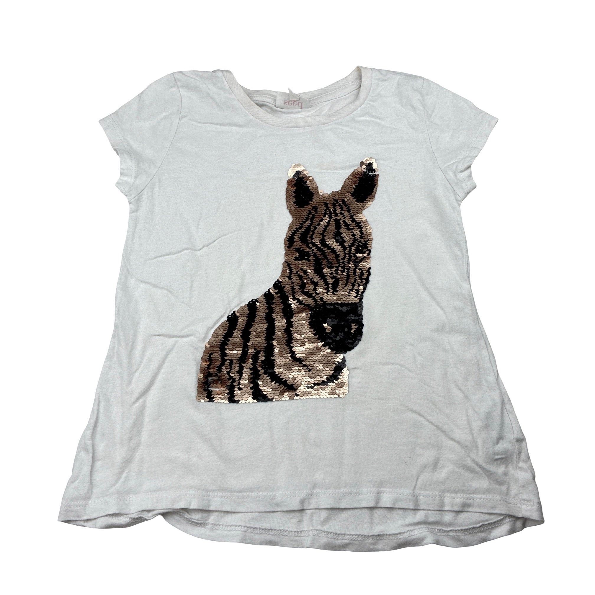 Seed, cotton tee / top, flip sequin zebra, FUC, size 7,