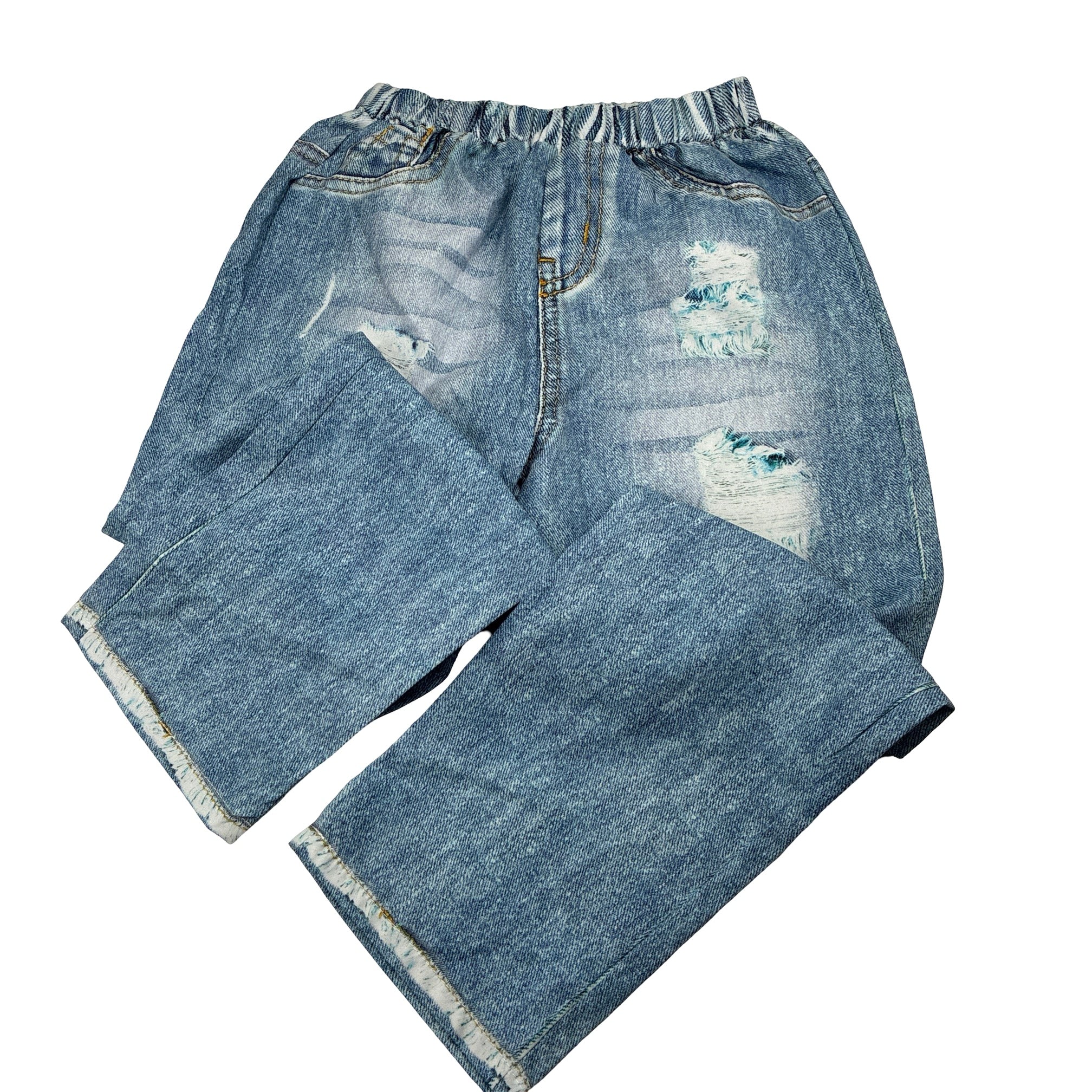 SHEIN, lightweight polyester pants *denim print only*, elasticated, Inside leg: 48cm, EUC, size 7,