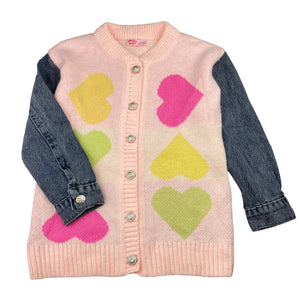 MAXI JUNIOR knit sweater / cardigan, denim sleeves, size 7-8, Pre-loved