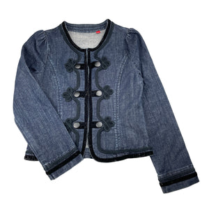 Esprit stretch denim jacket, armpit to armpit: 35cm, shoulder to cuff: 47cm, size 7-8, Pre-loved
