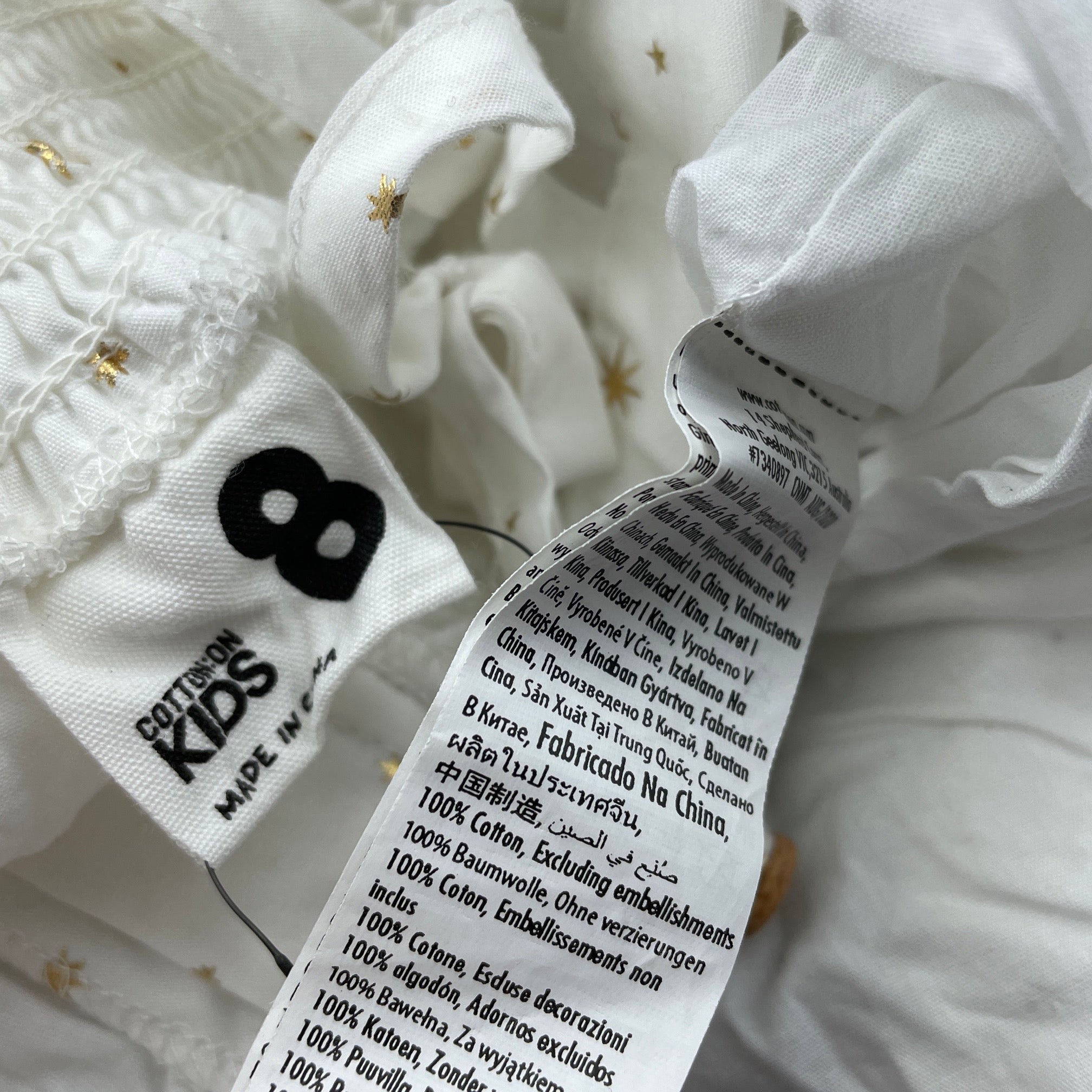 Cotton On, lined white & gold cotton summer dress, EUC, size 8, L: 75cm