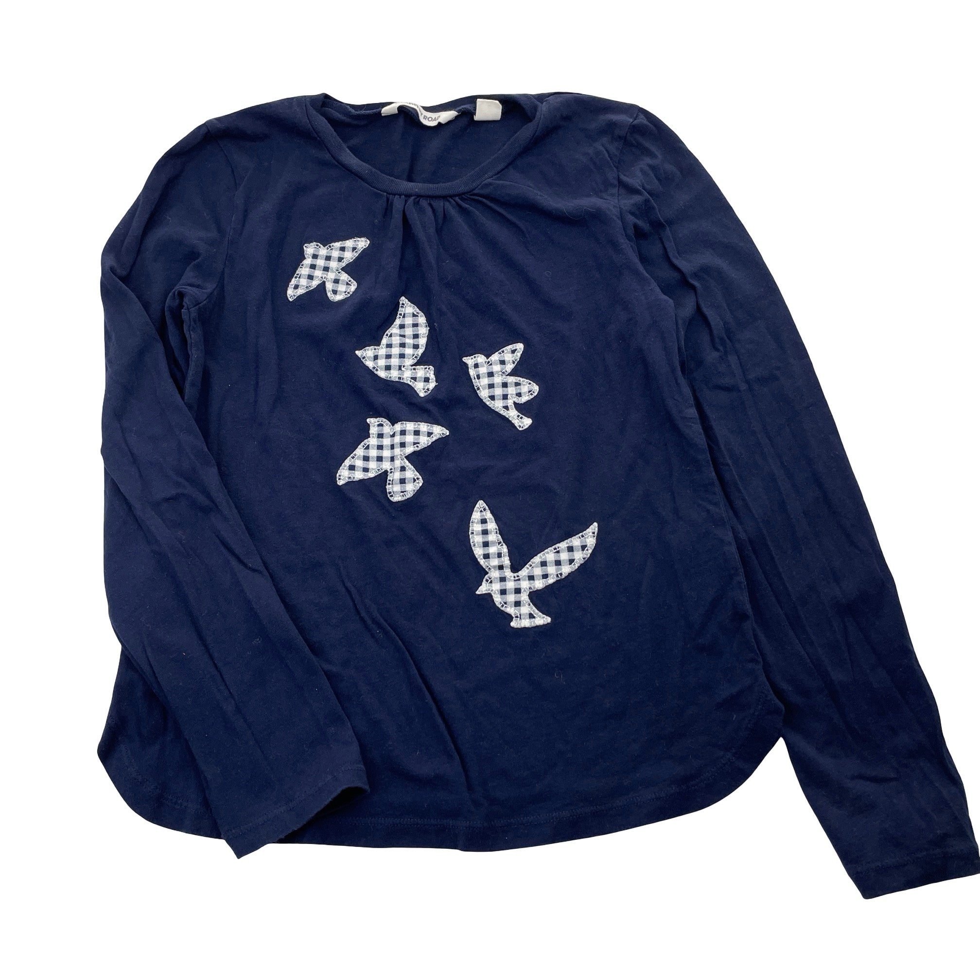 Country Road navy cotton long sleeve top, applique birds, size 8, Pre-loved