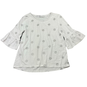 Decjuba Kids soft feel white & silver spot top, size 8, Pre-loved